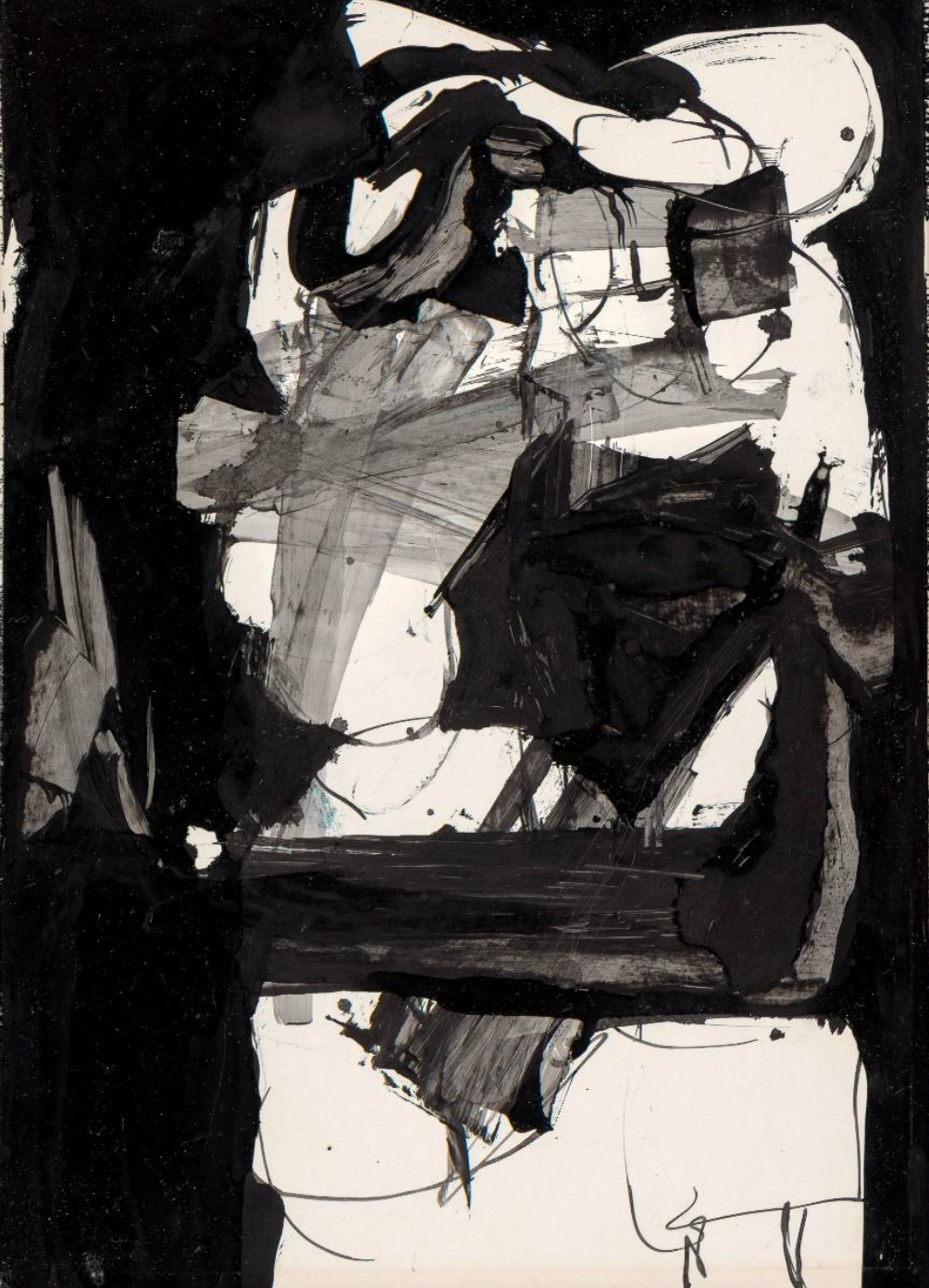 Kukje Gallery is pleased to present A Stranger to Strangers, a solo exhibition of Wook-kyung Choi, at Kukje Gallery Busan from August 25 through October 22, 2023. The fourth presentation of the artist at Kukje Gallery, this is Choi's first time being showcased in Busan. Best known for her expressionist use of bold brushstrokes and vivid colors, it was during her early years of studying abroad in the United States that Choi started constructing her unique grammar of abstraction. This exhibition presents 26 works on paper, mostly black-and-white ink drawings and prints, that highlight the artist’s formative years of experimenting with diverse mediums and conveying her frank observations of America as both an artist and cultural outsider. The exhibition borrows its title from a poetry book the artist published in 1972, when she briefly returned to Korea after her first phase of living in the U.S. A collection of 45 poems alongside 16 artworks, A Stranger to Strangers was a highly personal compilation of texts and images that powerfully captured the artist's experience finding her identity amidst the confusion and barriers she experienced as a foreigner, an experience that she recalled as having "shook her to her roots." Among the works featured in the book, six are on view in the current exhibition: Study, Study I, Study II, Experiment, experiment A, and I loved you once (all c. 1960s). While some of her later works—many of which had very direct titles based on her unique humor—seem to each narrate a complete story, the body of work presented in this exhibition is more fragments of thoughts. Recording these everyday observations, the works can be understood as candid yet unfinished entrees in a diary. (...) (Source = Kukje Gallery)