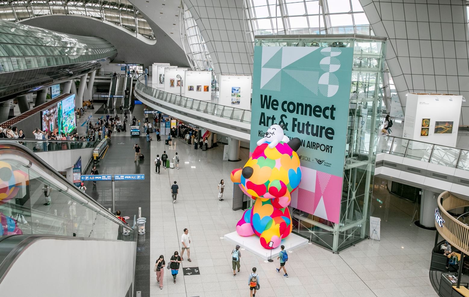 2023 KIAF SEOUL의 뜨거웠던 열기를 마지막으로 느낄 수 있는 곳! 지금 인천공항에서는 ’2023 문화예술주간(8.8~9.17)‘을 맞아 2023 인천공항 KIAF 특별전을 비롯해 미디어아트, 공공예술 등 예술의 새로운 지평을 여는 특별한 전시가 열린다고 합니다! K-Art의 미래를 이끌어 갈 49세 이하 젊은 작가 30명의 작품을 감상하고 이번 전시를 위해 특별히 선보인 아트놈 작가의 벌룬아트 ’하트모타루‘ 앞에서 인증샷을 남기는 것도 잊지 마세요! 더불어 도슨트 투어(매일 10시~오후 5시, 주말 제외)와 소정의 경품을 증정하는 현장 이벤트도 진행된다고 하니, 이 전시! 놓치지 마세요! [2023 KIAF 인천공항 특별전] <We Connect Art & Future 3rd Edition> - 이용료 : 무료 - 위치 : 제 1교통센터 1층 - 기간 : ~ ‘23.9.17(일) - 참여 화랑 : 20개 - 전시 작품 : 총 57 作 - 참여 아티스트 : 곽인탄, 쿤, 이주형, 젠박, 노은희, 신봉철, 세실 렘퍼문트 등 30명 - 공동 개최: 한국화랑협회, 인천국제공항공사 왕관, 왕좌, 궁중작식 등 전통문화를 재해석해 공간 예술로 선보인 김소산 작가의 ’궁중잔치‘에서는 개별 전시품이 하나하나의 작품이 되는 동시에 공간 전체가 하나의 작품이 되는 공간회화를 선보인다고 하니, 꼭 방문해보세요! [2023 인천공항-경기문화재단 협력사업 ’작가의 방‘ 프로젝트 첫 번째 전시, <궁중잔치>] - 이용료 : 무료 - 위치 : 제 1여객터미널 4층 한국문화거리 - 기간 : ~ ‘23.10. 31(화) - 참여 아티스트 : 김소산 AI, 생물학, 게임, 시각 데이터 등 다양한 첨단기술, 물질, 데이터와의 상호작용을 통해 예술적 순간을 선사하는 전시로 여행을 떠나보아요! [제 2회 인천공항 미디어아트 기획전 <In Sync>] - 이용료 : 무료 - 위치 : 제 2여객터미널 일반구역 4층 중앙부 및 터미널 내 대형스크린 7종 - 기간 : ~ ‘23.10.22(일) - 참여 아티스트: 조영각, 장지연, oOPs.50656 등 차세대 미디어 아티스트 11명(팀) *주관/주최: 파라다이스문화재단, 후원: 문화체육관광부, 예술경영지원센터, 인천국제공항공사 극지에서 온 7명의 작가들의 컨테이너 박스 - 그 안에는 어떠한 이야기가 담겨있을까요? [극지 레지던시 특별전 <남극/북극 출발 → 인천공항 도착>] - 이용료 : 무료 - 위치 : 제 2여객터미널 면세구역 254번 게이트 인근 - 기간 : ~ ‘23.11.30(목) - 참여 아티스트 : 김승영, 조광희, 손광주, 김세진, 염지혜, 이정화, 홍기원 등 7명 *후원: 극지연구소, 한국문화예술위원회, 인천국제공항공사 (출처 = 인천국제공항문화예술공연)
