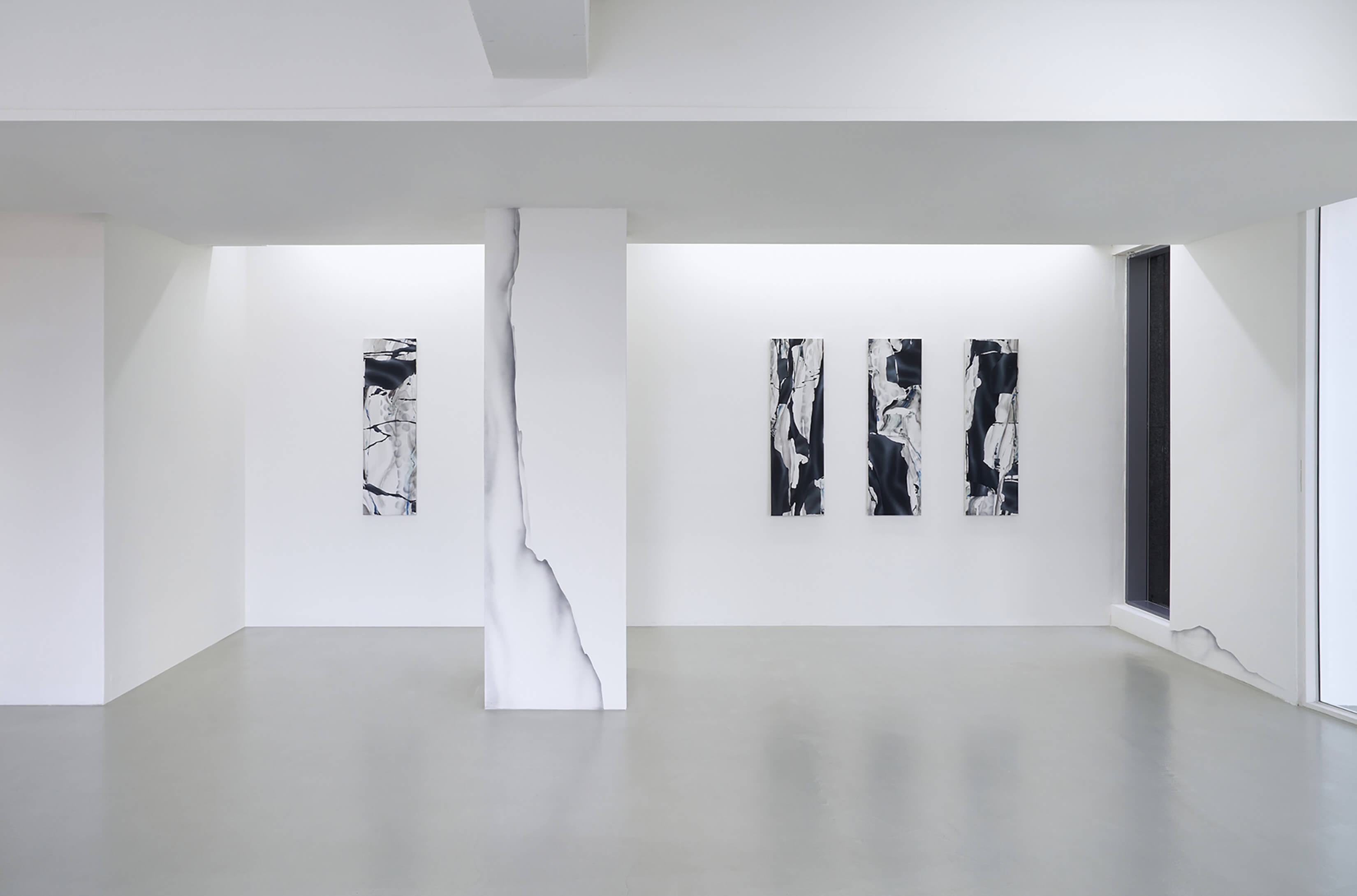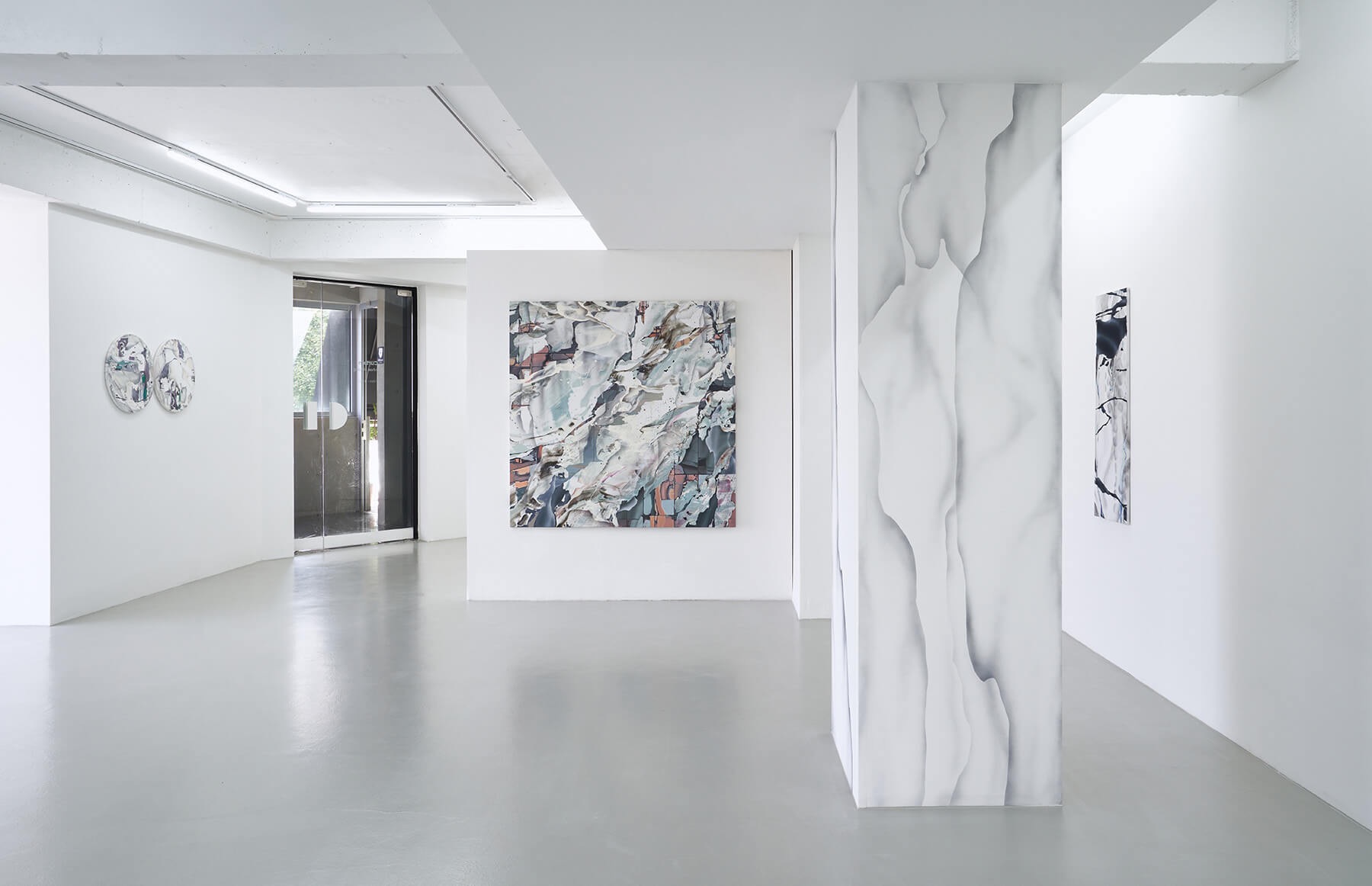 전시 타이틀 Curtain은 보통 창문과 같이 안과 밖의 사이에 위치하는 구조체로 물리적으로 온전한 경계이기 보다는 그 기능을 사적으로 수행하는 하나의 레이어다. 이번 전시에서 커튼은 보여지는 것과 가려진 것 사이의 틈새에서 우연성과 연속성을 가진 장치로 상정되어 황원해 작가의 도시 심상에 관한 흥미와 방향성을 담아낸다. 작가가 이전까지 평면과 입체를 포함하는 도시의 여러 층위에서 추출해낸 유사성으로부터 결국에는 위계가 없는 평면의 화면으로 향하는 연구를 했다면, 전시 <Curtain>에서는 도시의 표면적이고 물리적인 이미지가 내적인 심상으로 안착하는 과정에 집중한다. 스크린, 스크린이 반사되는 건물의 파사드와 같은 수평적 이미지가 연속하여 만들어낸 새로운 질서가 캔버스에 형식을 부여하고, 도시로부터 체화한 리듬에 우연적 형상을 더하며 화면을 직조한다. 화면에는 허상과도 같은 얇고 투명한 덩어리와 부피감, 눅진하고도 무겁게 뒤틀린 움직임, 연약한 동물의 척추, 가변성을 내포하는 구조체처럼 이질적인 요소들이 융합되고 충돌되며 도시 외양의 재현에서 탈피한 새로운 내적 심상이 생성되고 반복과 변주 속에서 또 다른 패턴이 드러난다. 작가가 연출하는 유기적인 공간 속에서 그 시각적 형식과 도시의 리듬을 따라갈 때, 우리는 커튼이 존재하는 ‘안과 밖’ , ‘보여지는 것과 가려진 것’ 사이의 가장 유리한 지점에서 세상을 내다보고 현대인의 정서를 공유할 수 있을 것이다. (출처 = 파이프갤러리)
