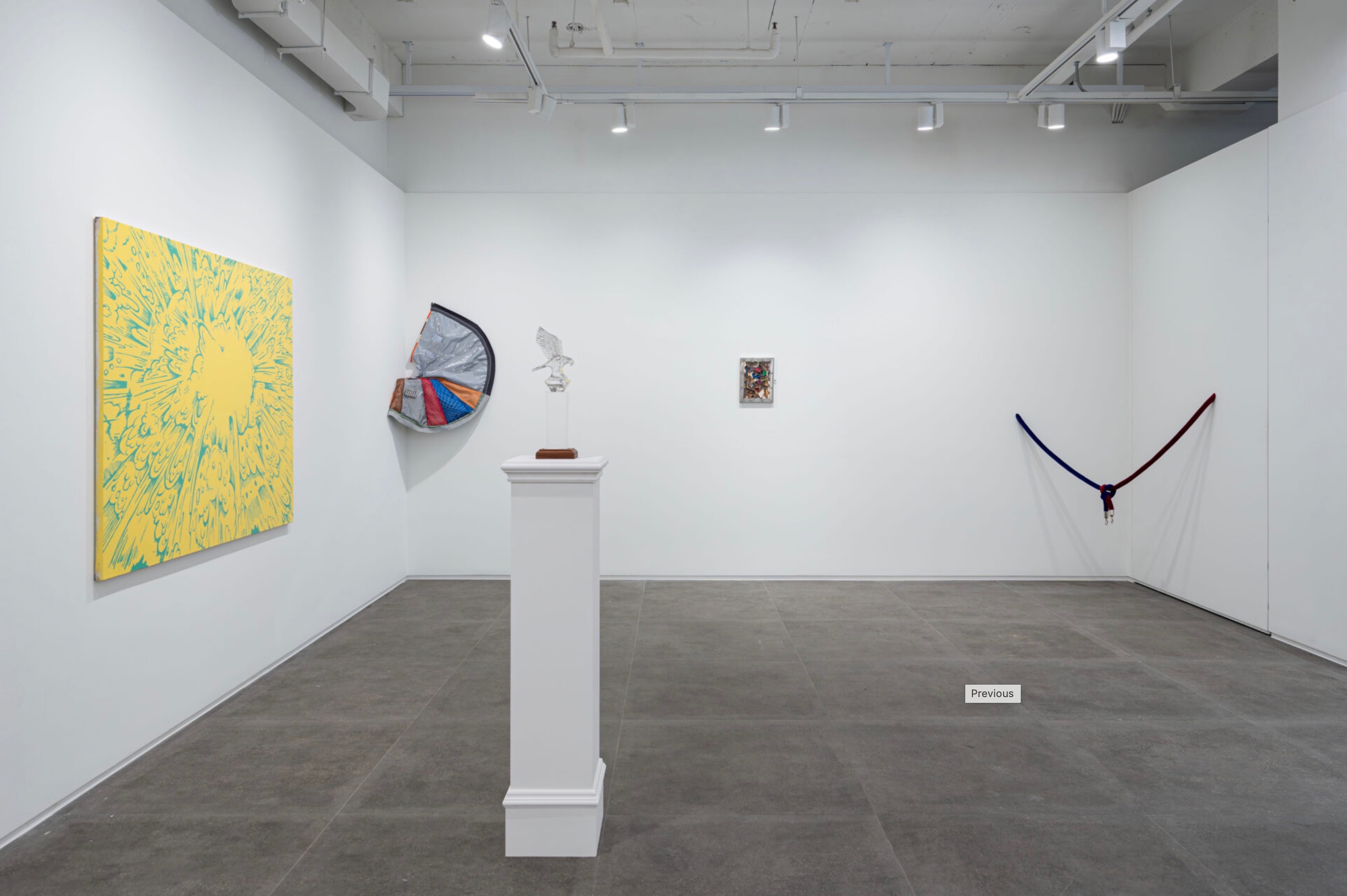현정윤은 관람객의 눈 앞에 놓인 작품을 통해 상황을 자아냄으로써, 작품 그 자체가 지금 무엇을 하고 있는지 바라보기를 지향한다. 작가는 ‘이렇게 하면 저렇게 볼 수 있지 않을까?’라는 기대를 품고 전시장에 작품을 내려놓는다. 관람객을 반갑게 맞이해야 할 입구에 위치한 조각 〈Untitled〉(2016)은 2개의 구부러진 막대봉이 서로 등을 돌리고 길을 막은 채 끈 하나만 바닥에 덩그러니 있어, 방금 무슨 일이 벌어졌던 듯한 상황을 만든다. 특히 이 작품은 작가가 순간적인 선택들을 통해 즉흥적으로 만들어진만큼, 보다 다양한 전후 상황을 상상케하는 동시에 속도감까지 느껴진다. 서로 다른 색상의 진입금지용 줄이 악수하듯 꼬여있는 〈A Bundle〉(2018)은 도시에서 움직임을 제한하는 사물들을 변형한 것이다. 실제로 관람객이 들어갈 수 없는 갤러리 공간의 출입문에 위치하여 그 작품이 처한 상황이 더욱 와닿는다. 반면, 주로 조각 매체를 다루는 작가로 소개되어왔던 현정윤의 사진 〈접었다 펼치기〉(2020)도 이번 전시에 함께 소개된다. 양쪽에 서로 다른 성격의 사진이 대칭으로 배치되어 서로를 참조하고 있다. 작품과 관람객은 각각 다르지만, 데칼코마니처럼 서로를 참조하며 전시에서 만나보길 바란다.