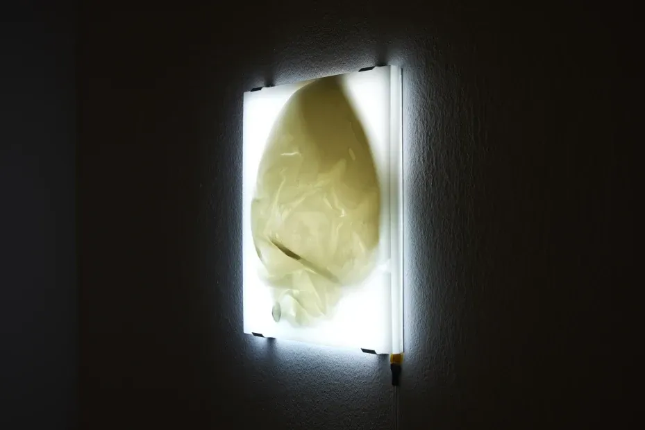 오브제 <바람이 새어나간 뒤>(After Deflation)와 <재구성된 조각들>(Recasted Pieces)은 영상에 등장한 풍선 잔해로 만든 작업이다. 만초니에게 풍선 자체는 작품이 아니었고 최수현의 2017년 영상에 등장한 풍선은 버려졌다면 이번에 풍선은 입체 작업으로 박제됐다. 오브제는 터진 풍선에 레진을 부어 굳혔다. 작가는 풍선에 이미 숨은 빠져나갔지만 가장 영구적인 재료로 오브제를 만들고 싶었다고 한다. 영구적으로 보존할 수 있는 작품, 즉 미술시장에서 안정적으로 거래될 수 있는 형태를 취하고 싶었던 것이다. 이것은 그에게 하나의 시도이면서 놀이다. 종이에 텍스트가 각인된 <테이트에서 온 메일>(A Mail from Tate)은 테이트 모던에서 보낸 서신이다. 만초니의 <예술가의 숨>을 실제로 보고 싶었던 작가는 테이트 모던에 요청 메일을 보냈지만, 그들은 ‘개별 물품 및 작품 전체에 가해지는 잠재적인 위험’ 때문에 관람을 허락하지 않았다. 사실 작가는 관람이 가능할 것이라고 예상하고 영상 작업을 기획했다. 계획이 무산됐을 때, 황당하기도 했지만 정말 이 ‘작품’은 볼 수 없다는 것을 깨닫게 된다.