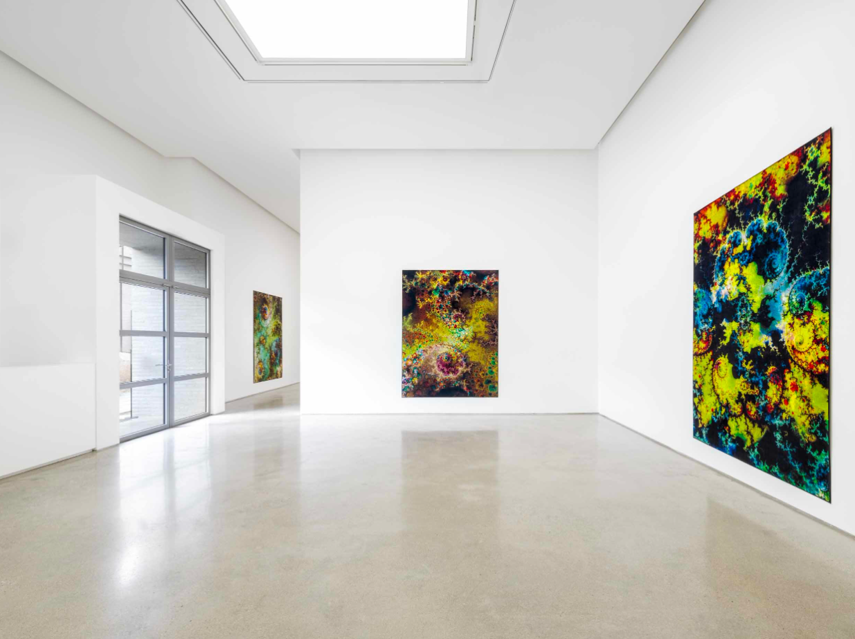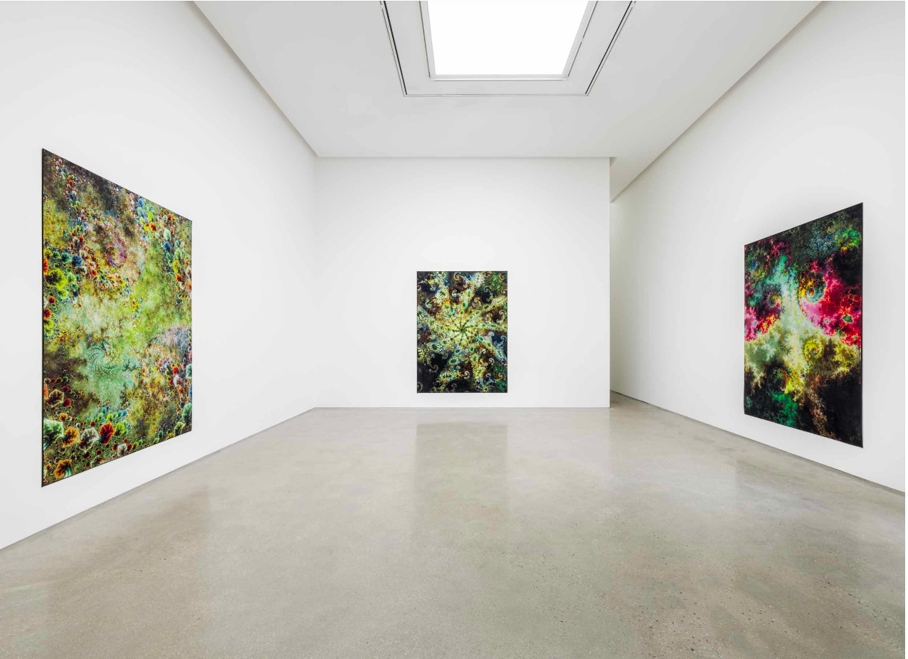 이번 전시에서 소개되는 최신작 ‹d.o.pe.›는 작가가 카펫을 사진의 지지체로 처음 사용한 작업으로, 다채로운 프랙털(fractal) 패턴이 최장 290cm의 거대한 융단 위에서 황홀경처럼 펼쳐진다. 수학자 브누아 망델브로(Benoît Mandelbrot, 1924-2010)가 1975년에 제시한 용어 ‘프랙털’은 기본적인 형태요소가 커지거나 줄어들면서 반복적으로 증식되는 구조를 뜻하는 것으로 자연 및 인공의 세계 모두에서 발견된다. 루프는 2000년대 초반 프랙털 구조의 다차원적인 아름다움을 작업에 반영하고자 했으나 당시의 기술력으로는 불가능했고, 20년이 지난 시점인 2022년에 소프트웨어의 발전과 더불어 비로소 실현할 수 있었다. 사진예술이 테크놀로지와 불가분리한 관계임을 인정하는 그는 ‹d.o.pe.›에서 신기술에 말 그대로 ‘뛰어들어(dive into)’ 환상적인 이미지를 추출하고 이를 부드러운 직물 위에 심도 깊게 투사해냈다.