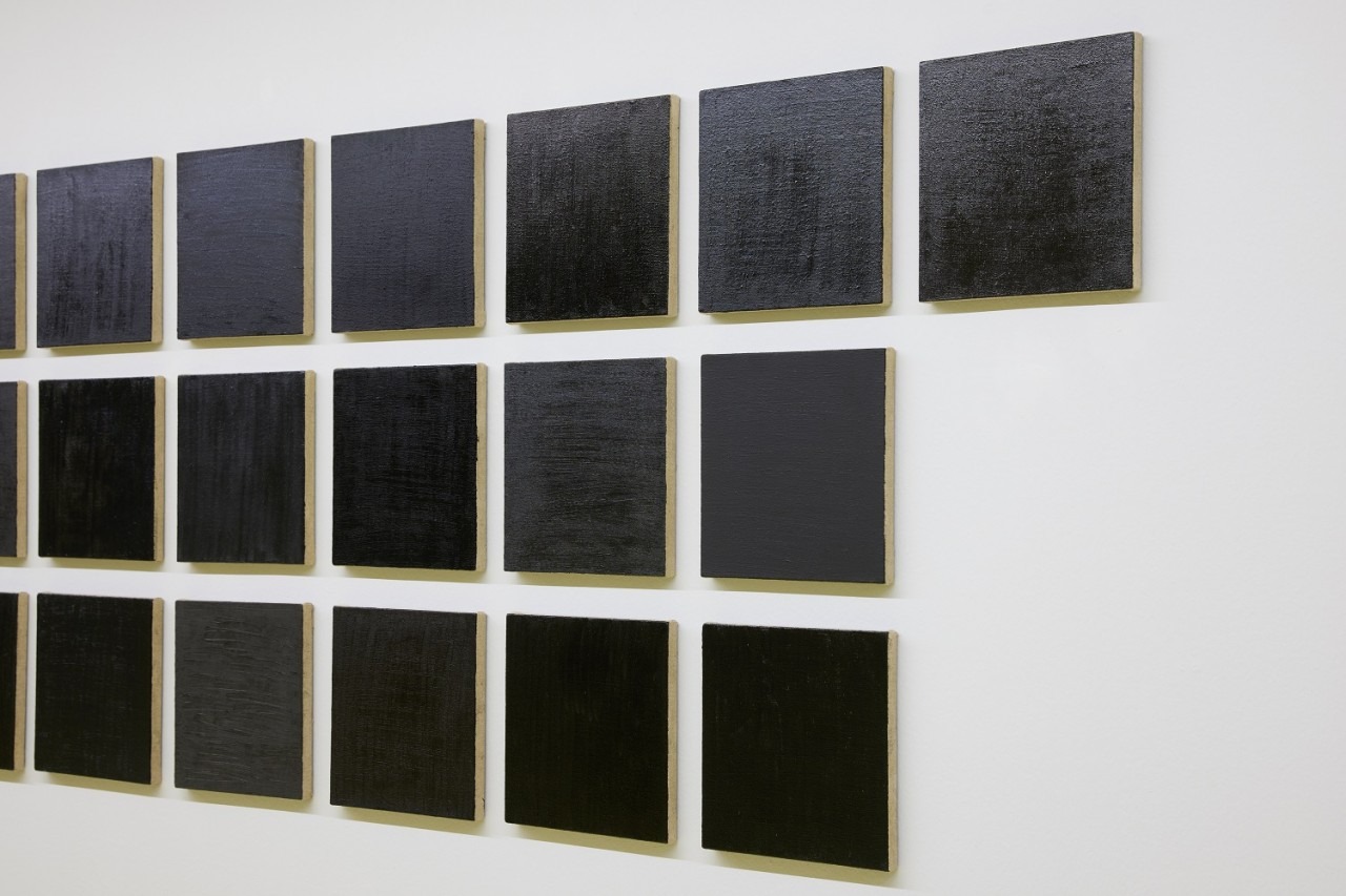 전시장에 들어서면 눈에 가장 먼저 들어오는 것은 당연하게도 검은색이다. 검은색이라는 하나의 단어로 함축되어 있는 이 색은 작가에 의해 한 자리에 펼쳐지면서 그 차이를 드러낸다. 여러 회사에서 만들어진 다양한 종류의 펜과 물감은 모두 검은색이지만 하나하나가 다른 느낌으로 다가온다. 이렇게 구분과 대조를 통해 보는 것이 중요한 이유는 이것이 우리의 고정된 관념을 말랑말랑하게 만드는 첫 단계이기 때문이다. 이러한 차이를 인식하게 되면서 우리는 자연스럽게 검은색이라는 것의 정의가 정확하게 무엇인지에 대해 고민하게 된다. 작가에 의하면 회화를 교육받은 작가는 먼저 시판되는 무채색으로 분류되는 검은색 물감은 사용하지 않고 여러 유채색을 조합하여 만들어 사용하도록 교육받는다고 한다. 여러 유채색이 섞인 검은색은 그것의 색상과 비율의 정도에 따라 모두 다른 검은색이 생성될 것이다. 그렇다면 우리는 실제로 시판되는 무채색의 검은색과 유채색으로 만들어진 검은색을 시각적으로 구분할 수 있을까? 그럼 우리는 무엇을 검은색이라 지칭하는가? 이런 생각이 꼬리에 꼬리를 물고 이어진다. 그의 작업은 우리에게 언제부터인지 모르지만, 반복적으로 학습되어 어떤 틀로 익숙한 것에서 다른 것을 발견하는 낯선 상황을 자연스럽게 유발한다. 아마도 그가 이러한 작업을 한꺼번에 펼쳐 놓는 전시의 방식은 우리가 머리로 상상하고 막연히 결론을 내리는 고정된 틀에서 벗어나는 환경을 만들기 위한 것으로 보인다. 이는 단일한 시선으로 주어진 대상을 흐릿하게 보는 것이 아니라 여기저기를 꼼꼼히 살피며 날카롭고 명확하게 다시 살펴보는 일이다. 따라서 그가 최대한 하나의 범주를 설정하고 색을 끌어모으는 이유는 작가 자신을 표준화된 행위자이며 규격화된 행동의 모델로 생각하기 때문일 것이다. 이렇게 본다면 작가가 명확하게 설정한 규칙을 자기 작업의 기본값이자 좌표 찍기라고 이야기하는 것이 이해된다.