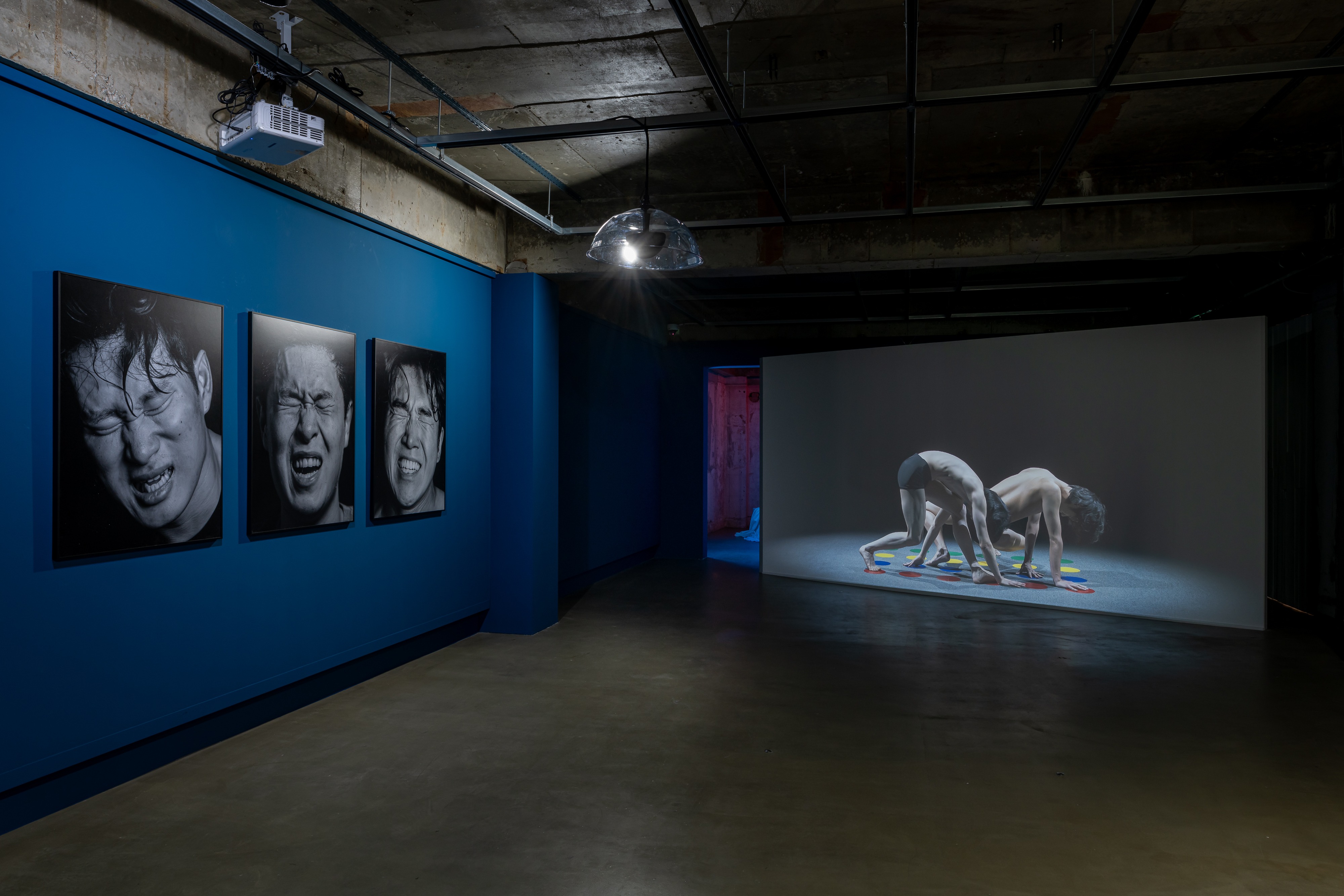 전민혁의 <트위스트> 속 두 남자는 룰렛을 돌려 무작위로 나오는 색을 손과 발로 짚어서 이기는 게임을 시작합니다. 상대와 뒤엉키는 과정에서 그들은 각자 버텨야 하는 전략과 자세를 취하는 한편, 게임에 이기기 위해서는 어쩔 수 없이 상대의 몸에 기댈 수 밖에 없는 아이러니한 상황을 연출합니다. 게임이 끝나는 순간, 두 플레이어의 얼굴에 번지는 미소는 실제 당신 삶 속에서 벌어졌던 소통 게임의 긴장과 이완을 떠올리게 합니다. <라이프 마스크>는 극도의 고강도 운동을 하는 사람의 얼굴 표정을 포착했습니다. 정신을 통해 신체를 조절할 수 있다는 자기 인식은 스스로를 이해하고 상대를 이해할 수 있는 것, 또는 그 너머를 경험하는 것의 가능성과 한계에 관한 질문으로 나아갑니다.