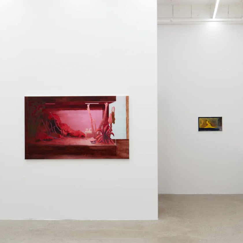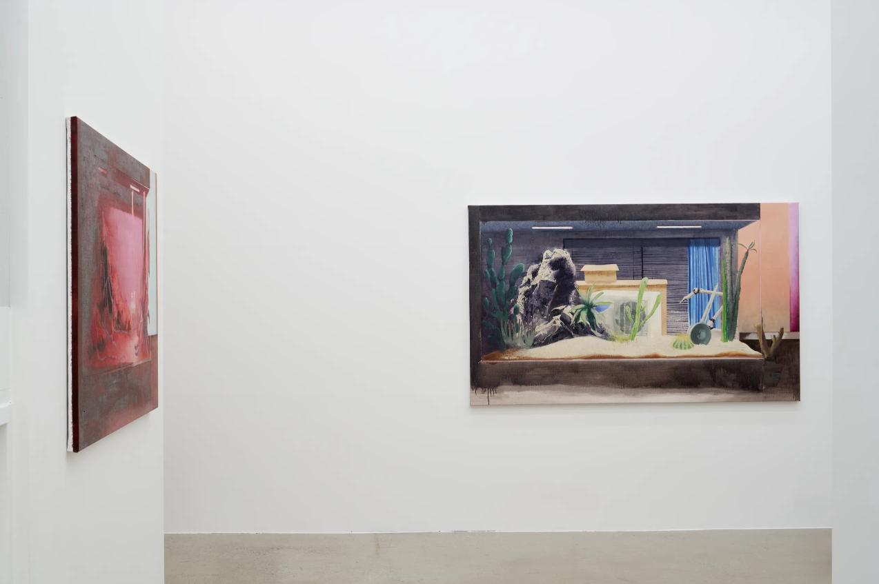 THEO는 2024년 3월 23일부터 4월 19일까지 Mircea Teleagă 개인전 『개와 늑대의 시간』을 개최합니다. The Hour Between Dog and Wolf 미르체아 텔레아가 Mircea Teleagă (b. 1989)는 런던을 기반으로 활동하는 루마니아 출신 작가이다. 그는 주로 구상에 추상적인 요소를 작품에 녹여내며 풍경과 전이 공간(Liminal Space 轉移 空間)이 특징인 유화 작업을 한다. 이번 전시 ‘개와 늑대의 시간(The Hour Between Dog and Wolf)’은 인간의 흔적을 담고 있는 여러 신비하고 기이한 풍경, 경계 그리고 유리 속의 소정원 ‘테라리움(Terrarium)’을 주제로 한 일련의 작품을 선보인다. 전시 제목은 어스레한 빛 조건 때문에 개와 늑대를 구별할 수 없는 특정 시간을 암시한다. 텔레아가는 전시에서 인적없는 장소들을 드러내는 데에 있어 해 질 녘이나 이른 새벽 같은 ‘경계 시간’의 빛을 선택한다. 그는 경계의 시공간(時空間)을 통해 외딴 세계의 윤곽을 그려내고자 한다. 테라리움을 주제로 한 작업은 우리 일상이 ‘자연’에 의해 완충되고 있거나 그 어느 것도 영원하지 않음에 대한 사색이며, 자연과 인간의 비자발적인 동조 속에서 인위적인 조화가 이루어지고 있음을 보여준다. 텔레아가의 작업에서 변함없이 나타나는 것은 그가 묘사하는 장소와 풍경에 스며드는 신비한 시간이다. 이러한 찰나에는 우리의 감각마저 우리 스스로를 속이기도 한다. 명확함이 의심으로 변하며, 우리는 존재하지 않는 것을 보인다고 착각한다. 고요한 장소에 무언가 숨겨져 있고 때로는 잠재적 위협이 있는 것처럼 보인다. 우리의 마음은 드러나지 않은 것에 집중함에 따라 이성은 불안과 긴장감에 굴복하고 만다. 시간의 흐름은 그의 회화에서 우리 현실과는 다르게 작동하는 것 같이 보이기도 한다. 작가는 그와 시간의 특별한 관계성을 불변하는 거품 속에 정지시킨다. 작품의 감상자는 태곳적의 사냥꾼이 된 것처럼 추적자와 경계자로서의 정체성 사이를 오가며 그가 만들어낸 새로운 풍경을 종횡하게 된다. 이 전시에서 우리는 거친 자연이 가두어져 있는 풍경을 보게 된다. 유리나 투명한 용기에 자연환경을 재현한 작은 정원을 테라리움이라고 부른다. 작가는 회화적 공간과 그것을 표현하는 방법 사이의 관계를 탐구하면서 자연과 인공의 경계를 탐색하는 독특한 테라리움을 만들어낸다. 그의 작업은 실제 유리 수조나 테라리움과 마찬가지로, 작가의 가장 개인적인 문제의식과 관심이 함께 오랫동안 길러지고, 자라나 독특한 생태계로 변화하는 과정을 전시하는 역할을 한다. 작품 속 테라리움은 간과되는 공간이 어떻게 그것을 둘러싼 사람들의 기록을 담고 있는지를 시사한다. 한때는 장식을 위한 그러나 지금은 잡동사니로 가득한, 내밀함과 산소가 부족한 이러한 공간은 기후변화의 위험을 암시하고 점점 줄어드는 사적공간의 결핍을 말한다. 작품에 묘사된 전이 공간의 세계(Liminal Worlds)는 축소되어 나타나 보인다. 그 안에는 주로 본질이 실용적인 사물로 가득한데 때론 밀실 공포증을 불러일으킬 것 같다. 작품에 묘사된 장소와 물체 그 자체는 우리의 감각을 압도한다. 화덕, 기름통, 타버린 케이블, 가솔린 등의 물체는 그 특유의 냄새를 상기시킨다. 오렌지빛의 유해하고 먼지 낀 도시 공기는 우리가 보는 세계의 윤곽을 그려주기도 한다. 그가 묘사한 세계는 분명 물질적이고 만질 수 있는 것들이기 때문에 마치 우리가 디지털 세상에 마음을 빼앗긴 사이에 남겨진 껍질들을 은유하는 것 같다. 전시에서 유리로 둘러싸인 공간이 없는 작품들도 같은 원리로 이해할 수 있다. 사적공간과 ‘홀로 있음’에 대한 갈망은 그의 작품 속에 늘 존재한다. ‘Interval’에서 산 정상의 풍경은 안과 밖이 뒤바뀐 테라리움으로 전환되어 나타난다. 이곳에도 인간존재의 흔적이 나타난다. ‘Breathing’에서는 지하실에 빼곡한 실외기들이 인공조명으로 밝혀진 암석이 있는 황량한 풍경의 공기를 빨아들이는 것 같다. 이렇듯 테라리움은 자기 인식을 강화하는 매개체로 묘사된다. 투명한 유리 스크린은 홀린 듯 그 안을 응시하도록 한다. 우리는 그의 작품을 통해 물질성과 촉각성에 대면하는데, ‘만질 수 없음’은 회화의 자기참조적 속성에 대해 생각하게 한다. 이렇듯 이번 전시에서도 작가는 그의 모든 작업에서 그러하듯, 무언가 끊임없이 드러내고 다시 숨기고, 불확실함과 그럴듯함을 강조하며 텔레아가 특유의 세계를 그려내고 있다. 미르체아 텔레아가(Mircea Teleagă)는 루마니아 혁명이 일어난 해에 루마니아 라다우치에서 태어나 국가가 공산주의에서 자본주의로 전환되는 불확실성 속에서 자랐다. 런던으로 이주한 후 그는 유니버시티 컬리지 런던의 슬레이드 스쿨오브 파인아트(UCL, Slade School of Fine Art)에서 공부했으며 2016년에 졸업하였다. 그곳에서 그는 디노스 채프먼(Dinos Chapman)에 의해 선정된 사라반드 리 알렉산더 맥퀸(Sarabande Lee Alexander McQueen)장학금을 받았다. 텔레아가는 홍콩, 노르웨이, 한국을 포함한 전 세계 다양한 레지던시 프로그램에 참여하였다. 작가는 대부분의 삶을 해외에서 보낸 이 시점 그의 작업에서 항상 장소와 소속감에 대한 개념을 다루면서 복