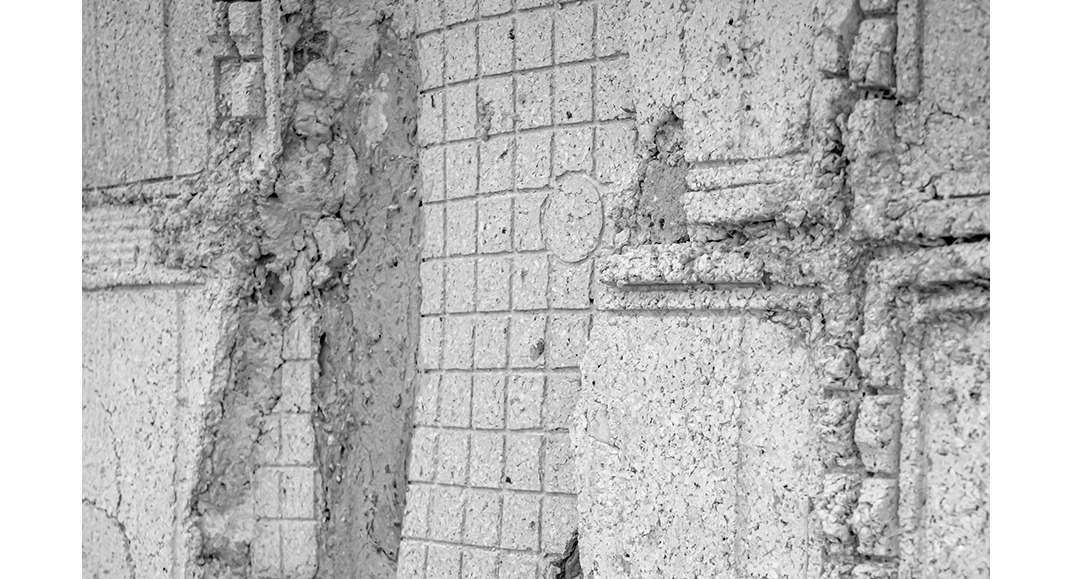전시에서 그는 출처가 다른 여러 종이를 으깨고 이어 붙여 만든 벽 구조물 등을 선보인다.