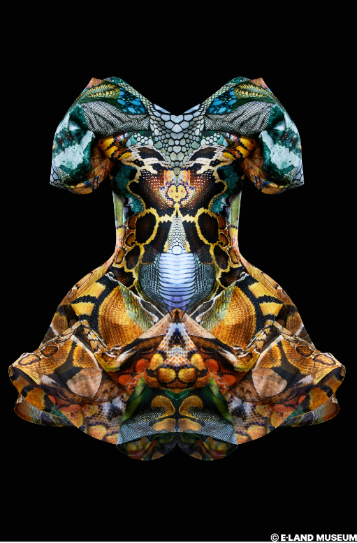 ‘Crazy Entertainment(치명적인 아름다움)’은 패션계의 전설이자 혁명가였던 알렉산더 맥퀸 컬렉션을 선보입니다. 특히 알렉산더 맥퀸의 첫 번째 지방시 컬렉션을 위한 스케치와 2010년 그가 사망하기 전 마지막으로 선보인 컬렉션의 디지털 프린트 드레스가 공개됩니다. 이 공간에서는 알렉산더 맥퀸에게 영감을 받아 제작된 메이킴 작가의 미디어 아트도 주목할 만한 작품입니다.