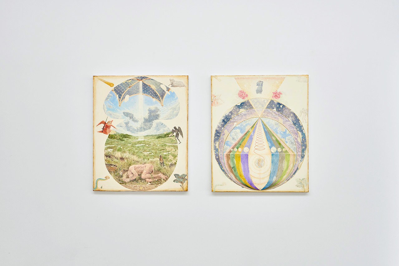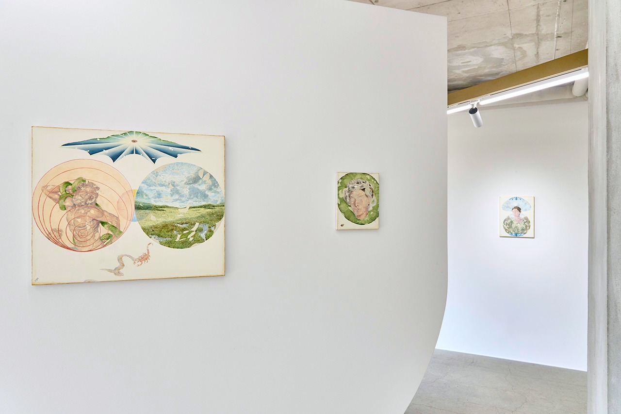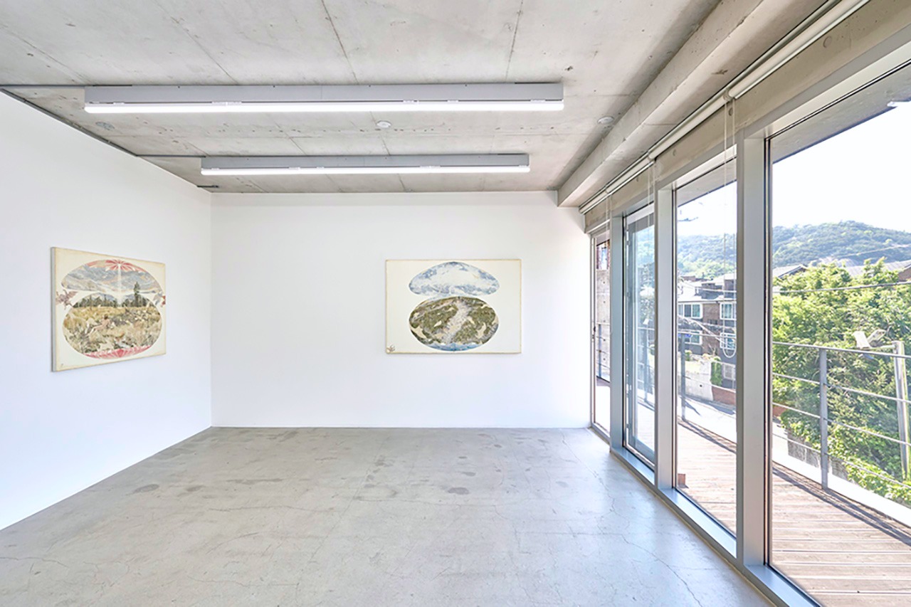 egg 어떤 방황을 하더라도 결국 우리는 인류의 일원이다.. 나는 좋은 미술은 우리에게 지치지 않고 새로운 세계를 보여주는 창문이라고 꾸준히 강조해왔다. 여기서 말하는 ‘새로운 세계’는 곧 작가가 만든 세상이며 작가가 전하고 싶은 메시지일 테다. 많은 미술 작품들이 삶의 다양성과 가치를 저마다의 그릇에 담고 있지만, 어떤 미술은 희한하게도 천차만별의 삶으로 깊숙이 들어가 한참을 탐험하게 만든다. 류노아의 회화를 보고 돌아오는 날이면 나는 오랜 시간 그의 작품 속에서 헤매고 항해해야만 했다. 중세시대부터 동시대까지, 한 번도 가보지 않은 유럽의 끝자락부터 내가 사는 서울의 구석진 동네까지…류노아의 회화에서 만난 장소와 인물들, 알 수 없는 생명체들은 내 심연에 들어와 함께 살면서 다시 그 이미지들에 대해 곱씹어 생각하게 했다. 이런 과정은 늘 기쁘게 버거웠다. 거대한 미술사의 흐름과 화가가 만들어낸 이미지를 믿는 사람들은 어디서든 자신이 추구하는 환영을 찾는다. 우리 중 누군가는 류노아의 회화에서도 자신이 아는 미술사 속 이미지를 보물찾기처럼 발견해낼 것이다. <eye> 에서는 미국의 화가 앤드류 와이어스의 <크리스티나의 세계> 속 쓰러져있는 연약한 존재를 찾아내고, <fin>이나 <Shelter> 에서는 중세시대나 고대 그리스·로마의 삽화 속에 등장할 만한 반인반수를 마주할 것이다. 그도 그럴 것이 내가 본 류노아의 작업실은 ‘고전 이미지 사냥꾼’ 의 비밀스러운 요새 같았다. 류노아는 거대한 미술사의 시간과 대륙을 종횡무진으로 움직이며 본인이 마음에 드는 이미지들을 사냥해 작업실 곳곳에 붙여 놓고 그 이미지들을 마법 수프처럼 다시 끓여 자신의 세계를 재창조한다. 그렇다면 류노아가 미술의 역사에서 사냥한 이미지들은 어떤 의미로 작용해 두 번째 개인전인 이번 전시 작품들에 영향을 주었을까? 이번 전시의 제목 «egg»는 작품들을 감싸고 있는 ‘알’ 같은 형태로부터 시작되었다. 완전한 대칭도 아니고, 완전한 구(球)도 아닌 류노아가 택한 이 새로운 egg는 미술의 역사상 최초로 추상 작업을 한 것으로 알려진 스웨덴의 힐마 아프 클린트의 작품 <인식의 나무> 1913 에서 영감받았다. 아프 클린트의 작품 속에서 존재하는 원형의 실루엣은 버섯 같기도 하고 해파리 같기도 하며 북유럽 신화의 기반이 되는 거대한 우주목 위그드라실(yggdrasil)의 형상을 하고 있다. 류노아는 아프 클린트의 이 우주목 형상을 자신의 회화 안으로 합류시킴으로써 작가가 제안하는 틀이자 구획으로 활용한다. 대표 작품들에 반복되는 이 egg는 류노아만의 회화적 제식(祭式)으로 여겨진다. 마치 역사를 이겨낸 대성당의 튼튼한 돔처럼 류노아의 egg는 작품을 보는 이들에게 자신의 회화 안으로 들어오라고 재촉하며, 새로운 세계로 기꺼이 입장하고 싶은 기묘한 문의 역할이 되어주고 있다. 전시 제목과 동명의 작품인 <egg>에서는 이제 막 세상에 태어난 인간이 웅크린 채 누워있다. 꿈과 현실이 녹아든 듯한 장소에서 하늘은 장엄하게 빛을 내리고 먹구름은 곧 퇴장할 기세다. 수호천사와 악마로 보이는 존재가 egg의 경계에서 인간을 지켜보고 있고 발 없는 용의 몸을 한 생명체도 인간에게 서서히 다가가고 있다. 이렇듯 류노아가 그린 세계는 환생과 소멸, 발전과 쇠락, 자연과 문화, 신앙과 현세의 의미를 평형한 진리로 품고 있다. <eye> 에는 좌절과 친구가 된 듯한 인간이 이름 모를 벌판에 홀로 남아있다. 앞서 말한 앤드류 와이어스의 <크리스티나의 세계>에서 쓰러져있는 크리스티나에서 영감을 받은 이 인물은 미술사에서 다시 끄집어낸 이미지의 파편이지만 류노아의 세계관에서는 다시 일어나 능동적으로 살아갈 존재로 보인다. 미술사 속의 이미지들을 사냥하는 과정에 대해 류노아는 뚜렷한 목적을 담기보다는 자신이 좋아하는 이미지들을 모은다고 표현했다. ‘즉 고전의 이미지를 사냥하는 자’로서 동시대 미술을 대하고 자신의 세계관을 창조하는 것이다. 이번 전시의 특별한 점 중 하나는 드로잉의 ‘재창조성’이다. 대부분 화가는 캔버스에 회화 작업을 하기 전 습작이나 아이디어 스케치용으로 드로잉을 하지만 류노아는 이와 반대다. 류노아는 회화를 그린 후 드로잉을 다시 제작한다. 여기서 ‘제작한다’라는 표현을 쓴 이유는 류노아의 드로잉이 산발적이거나 빠른 시간 동안에 캐치하는 크로키식 성질을 지향하고 있지 않기 때문이다. 류노아의 드로잉은 인식과 확신의 과정이다. 그는 드로잉을 하나의 종이만을 가지고 하지 않는다. 같은 종이여도 더 창백한 백색과 조금 노란 미색의 종이, 마스킹 테이프 등을 활용해 본인이 그려낸 회화 작업을 다시 재창조한다. 이 과정에서 류노아는 드로잉과 데꼴라쥬, 컷-아웃을 결합한다. 결과적으로 유화 작업에 앞서 진행하는 ‘과정으로서의 드로잉’이 아니라 자신이 만든 회화적 세계를 스스로 한 번 더 묘사함으로써 중복되는 과정을 되풀이한다. 결국 재창조된 드로잉으로 인해 류노아가 만든 세계는 더욱 확고해진다. 앙드레 말로가 《침묵의 소리》에서 예술은 ‘형식으로 다른 형식을 정복하는 것’이라고 말했