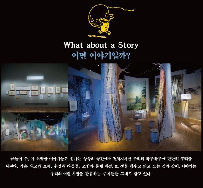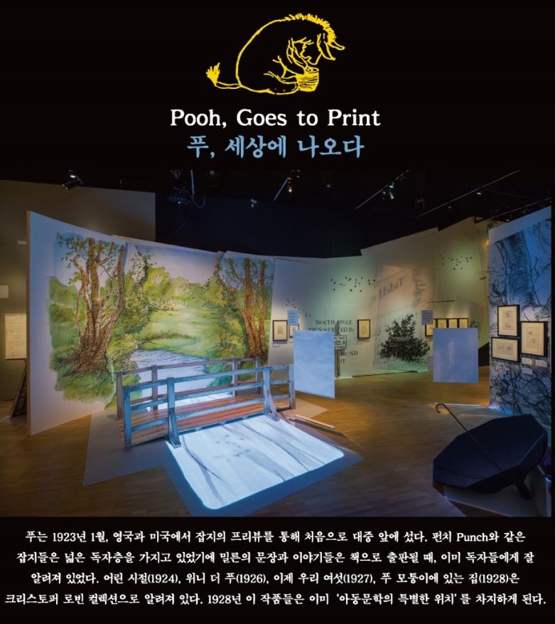 우리의 어린시절 기억 속 곰돌이 푸가 다시금 여러분을 찾아옵니다. 영국 런던의 V&A Museum을 시작으로 미국, 일본을 거치며 약 60만명의 관람객들의 추억을 되살려준 <Winnie-the-Pooh : Exploring a Classic>전시회가 글로벌 투어의 마지막 장소로 서울 소마미술관으로 찾아옵니다. <곰돌이 푸> 전시회에서 그동안 잊고 있었던 순수한 어린 시절을 되새겨보세요. ※작가 소개※ 알란 알렉산더 밀른 (1882-1956) A.A.밀른은 케임브리지 대학교 트리니티 칼리지에서 수학하면서 본격적으로 글을 쓰기 시작했으며 1906년, 영국의 주간지 펀치 Punch의 부편집자가 되었다. 1920년대 중반까지, 밀른은 유머러스한 문장과 사회적 풍자로 유명한 작가였고, 동화와 희곡뿐만 아니라 살인 미스터리 소설에 이르기까지 다양한 작품들을 발표했다. 어니스트 하워드 쉐퍼드 (1879-1976) 많은 흑백 일러스트레이터들처럼 펜과 잉크로 그리기를 좋아하는 쉐퍼드는, 인기 잡지에서 경력을 시작했다. 1906년 부터 쉐퍼드는 펀치 Punch의 고정 작가였으며 제1차 세계대전 동안에도 그는 전선에서 그림을 보냈다. 1923년 가을, 펀치의 한 동료가 쉐퍼드를 밀른의 동화책 일러스트레이터로 소개했다. 쉐퍼드의 그림은 밀른의 유머에 완벽한 보완재가 되었다. 절제된 선과 생동감 넘치는 디테일, 꿈틀대는 움직임과 같은 쉐퍼드의 스타일은 밀른의 문장과 잘 맞아떨어졌다.
