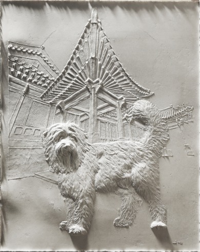 갤러리위에서 열리는 초대전 'Culture & Dogs'를 통해 새롭게 선보이는 작업에는 우리나라의 궁궐, 성덕대왕신종, 달항아리 등을 배경으로 진돗개와 삽살개가 등장한다. 토종견으로 명맥을 이어오며 반려동물로서도 사랑 받는 견종과 전통의 산물이자 다음 세대에게도 계승되어야 할 고유한 문화유산의 접점이 과거와 현재를 아우르며 물질적·정신적 존중과 신념의 가치를 전한다.
