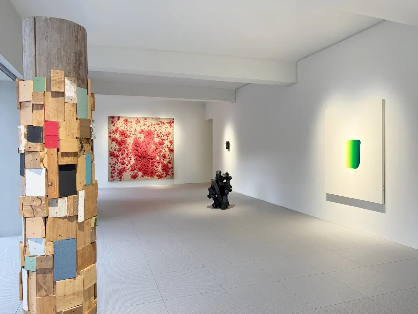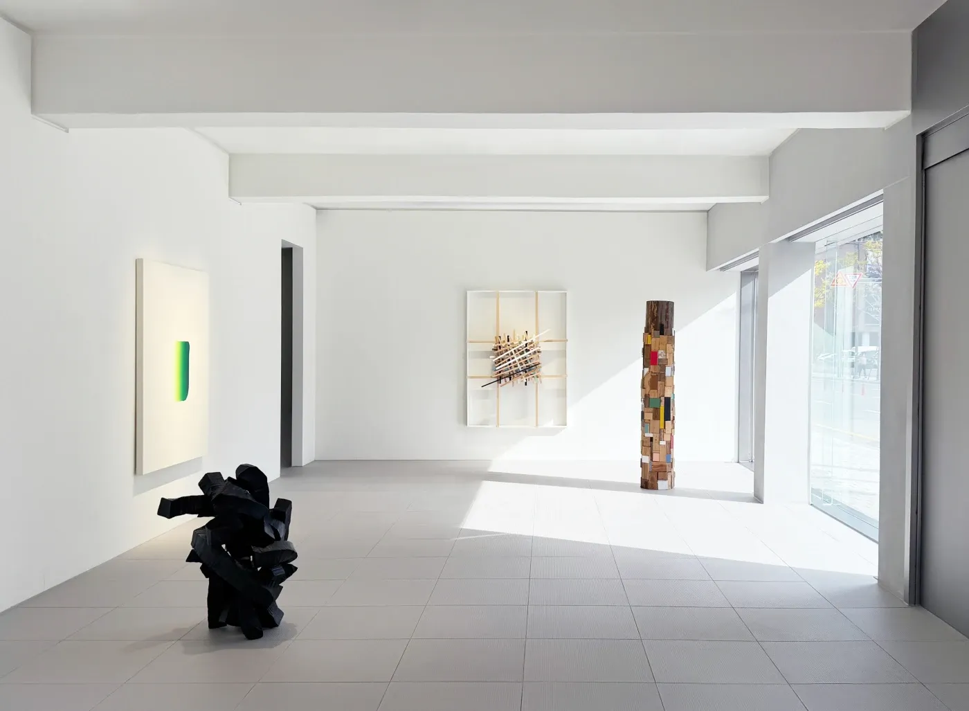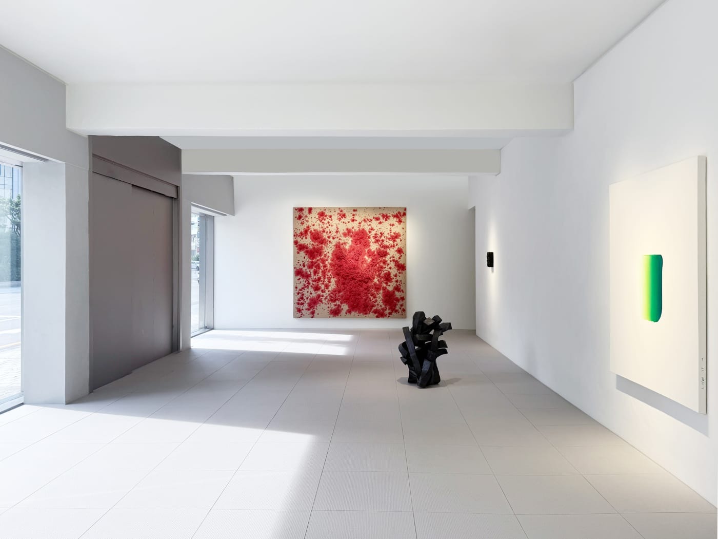 보스코 소디 (b. 1970) 미국을 중심으로 멕시코, 독일, 일본 등 세계를 무대로 활발히 활동하고 있는 보스코 소디는 풍부한 질감과 선명한 색상을 지닌 거친 표면의 부조회화로 널리 알려져 있다. 뿐만 아니라 회화, 조각, 설치 등 다양한 형식과 매체를 사용하는 방식으로 독자적인 작품세계를 구축하며 평단의 호평을 받아왔다. 그는 캔버스를 지면에 수평으로 놓고 그 위에 안료, 톱밥, 목재 펄프, 천연 섬유질과 아교의 혼합물을 오랜 시간에 걸쳐 흩뿌리고 두껍게 쌓아 올린 후, 작업이 굳도록 내버려둔다. 보스코 소디가 작품을 제작하는 과정은 하나의 퍼포먼스이다. 때로는 몇 달간 방치되기도 하는 이 시간 동안 작품의 표면에는 작가의 행위가 고스란히 드러나며 단층의 선을 따라 움직이고 멈춘다. 물질이 건조되면서 표면에 첫 갈라짐이 나타나는 순간 작업을 중단한다. 그의 작품은 일본의 이시카와현립미술관, 미국 매사추세츠의 하버드 박물관, 벨기에 앤트워프 현대미술관, 네덜란드 바세나르의 보르린던 박물관, 그리고 호주 멜버른의 빅토리아 국립미술관 등 다양한 공공 및 사립 컬렉션에 포함되어 있다. 이 배 (b. 1956) 이 배 작가는 30여년 동안 숯이라는 재료와 흑백의 서체적 추상을 통해 한국 회화를 국제무대에 선보이고 있다. 1989년 도불 이후 서양 미술재료 대신 한국인들에게 친숙한 재료인 숯을 작품에 사용하기 시작했다. 작품에는 숯이 가지고 있는 삶과 죽음, 순환과 나눔 등의 태생적 관념 위에 작가 특유의 예술적 상상력이 더해진다. 작가는 숯을 이용해 드로잉, 캔버스, 설치 등의 다양한 형태의 작업을 해오면서 자신의 영역을 확장시켜왔다. 캔버스 위에 절단한 숯 조각들을 빽빽하게 놓고 접합한 후 표면을 연마해낸 이슈드푸(Issu du feu), 숯가루를 짓이겨 미디엄을 사용해 화면에 두껍게 안착시킨 풍경(Landscape), 목탄에서 추출한 검은 안료로 캔버스 위에 형태를 그리고 밀랍 같은 두꺼운 재료를 여러 번 덮은 작업인 아크릴미디움(Acrylic medium), 숯가루가 섞인 먹물로 다양한 형태의 붓질 그대로를 보여주는 붓질(Brushstroke), 숯 자체 또는 브론즈로 보여주는 조각 시리즈 등이 있다. 그는 숯을 사용하는 이유가 그 안에 인간이 통제할 수 없는 거대한 자연이 존재하기 때문이라고 말한다. 작가는 베니스 비엔날레, 뉴욕 록펠러ᅠ센터ᅠ채널ᅠ가든, 프랑스 기메 미술관, 페르네브랑카 파운데이션, 대구미술관, 생테티엔 현대미술관, 베이징 투데이 아트미술관 등 다수의 전시에 참여했다. 2000년 국립현대미술관 ‘올해의 작가상’을 수상하고, 이후 2009 파리 한국문화원 작가상, 2013년 한국미술비평가협회 작가상, 2018년 프랑스 문화예술 훈장 기사장을 받았으며, 2023년에는 대한민국 문화예술상을 수여받기도 하였다. 현재 그의 작품은 국립현대미술관과 서울시립미술관, 리움미술관, 마그파운데이션, 프랑스 파리 기메 박물관, 스페인 쁘리바도 알레그로 재단, 바루 재단을 포함한 국내외 주요 미술관에 소장되어있다. 키시오 스가 (b.1944) 일본의 모노하(もの派, mono-ha) 운동을 이끈 키시오 스가는 나무, 금속, 돌, 종이, 로프, 콘크리트, 왁스, 비닐 등의 물체를 가공하지 않고 있는 그대로 공간 안에 배치하여 연결시키는 방식으로 작업한다. 물체와 물체, 물체와 공간 사이의 중간 영역을 조율하는 방식으로 작품에 개입하며, 회화나 조각이라는 기존의 예술 장르를 넘어 일종의 풍경을 통한 유동적 관계를 경험케 한다. 그는 1964년부터 1968년까지 도쿄의 타마미술대학교를 다녔으며, 당시 아르테 포베라, 랜드아트 등의 국제적 흐름에 영향을 받은 노부 세키네, 지로 타카마츠와 같은 젊은 예술가들과 함께 모노하를 탄생시켰다. 졸업 직후 자연과 사물을 이용한 일시적인 구성물을 만들기 시작했으며, 이를 도쿄의 야외 장소에 배치하여 "필드워크"라는 용어로 정의했다. 그는 이러한 활동을 실내 환경으로 옮기며, 파라핀 왁스로 만든 토템 모양의 "평행 지층" (1969)이나, 세로로 놓인 강철 판 네 장으로 이루어진 사각형인 "소프트 콘크리트" (1970)과 같은 전례 없는 설치 작품으로 인정을 받았다. 제8회 파리 비엔날레, 제38회 및 제57회 베니스 비엔날레에 작품을 선보인 그는 지난 40년동안 파리의 국립 현대 미술 센터, 뉴욕의 구겐하임 미술관, 샌프란시스코 현대 미술관, 뉴욕 현대 미술관, 베니스의 푼타 델라 도가나 등 유수의 미술관의 주요 전시에 참여했으며, 최근에는 뉴욕의 Dia: Chelsea와 밀라노의 피렐리 행거비코카에서 개인전을 개최했다. 그의 작품은 현재 다양한 공공 및 사립 컬렉션에 포함되어 있다. 이우환 (b.1936) 이우환은 서울대학교 미술대학을 중퇴하고 일본으로 건너가 1961년에 니혼대학 문학부 철학과를 졸업하였다. 1968년부터 1975년 사이 일본 도쿄에서 전개된 모노파의 이론과 실천을 주도하며 주목받기 시작했고, 이후 모노파의 이론적 토대를 마련한 인물로서 국제적 명성을 얻고 활발히 활동하고 있다. '점과 선의 대가'로 불리는 그의 초기 작품들은 점이 선이 되고 나아가서는 아무것도 아닐 수 있다는 동양 사상에 바탕을 두고 있다. 그의 작업은 ‘획’이 지닌 의미와 그려지