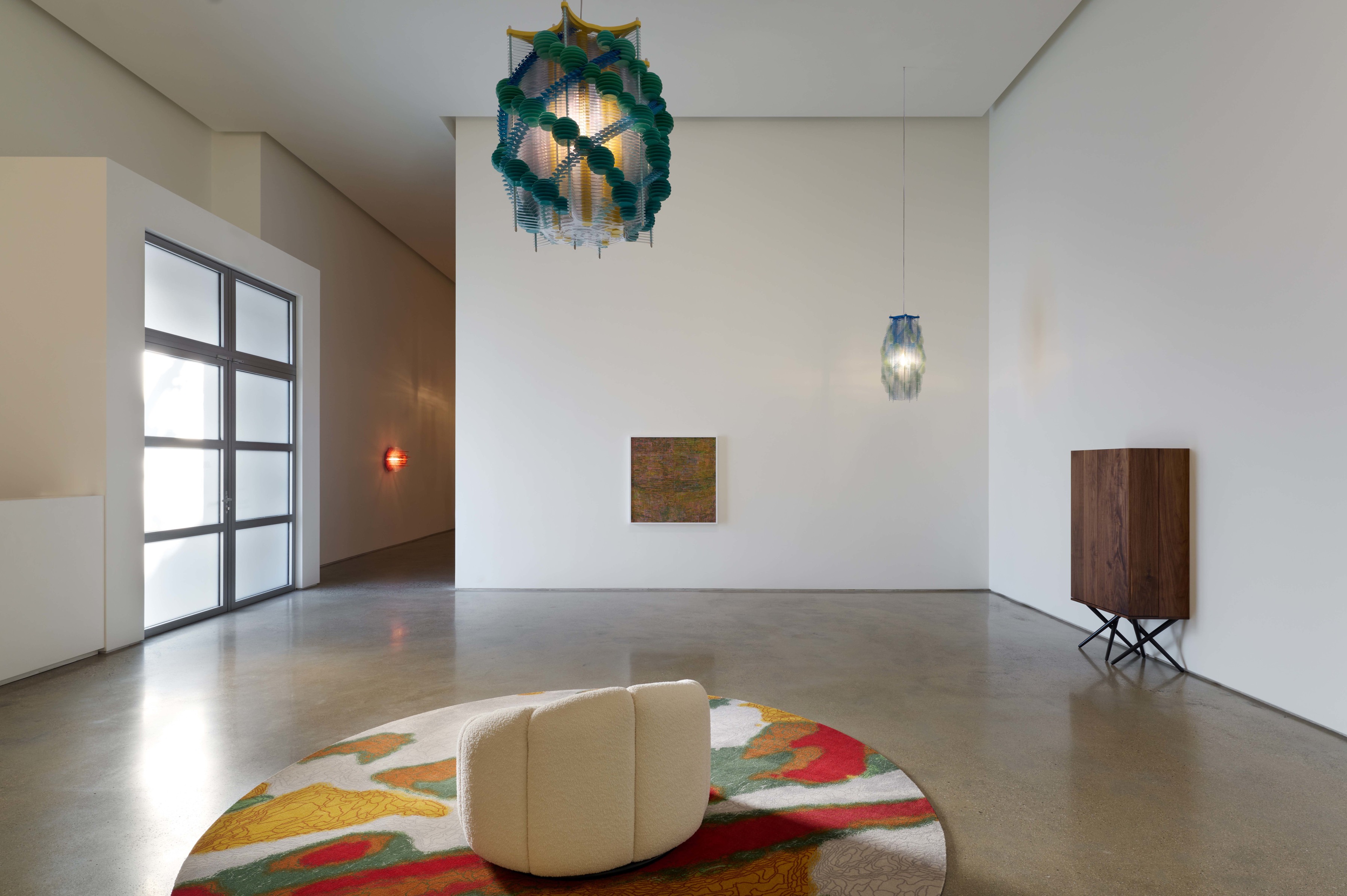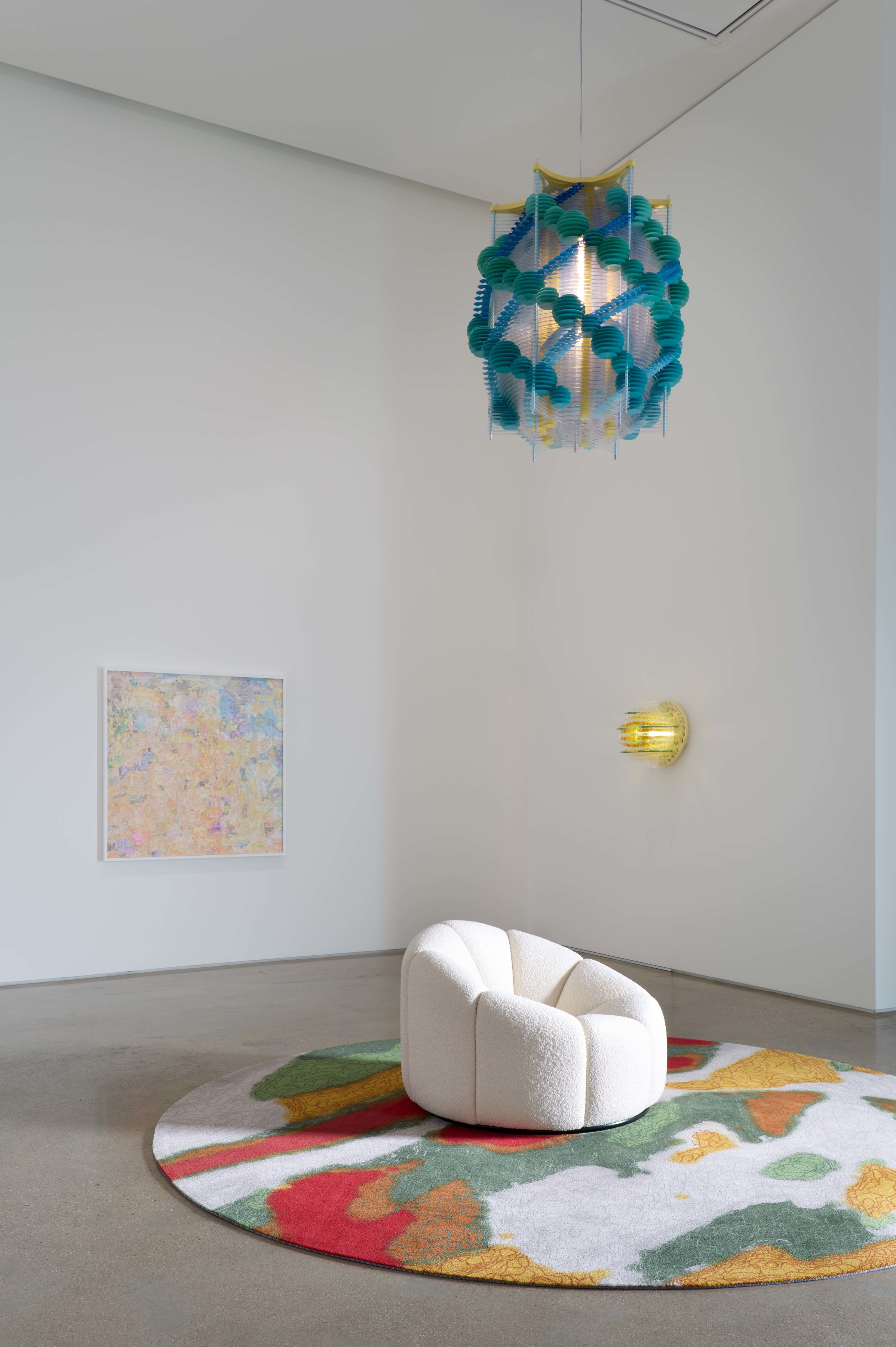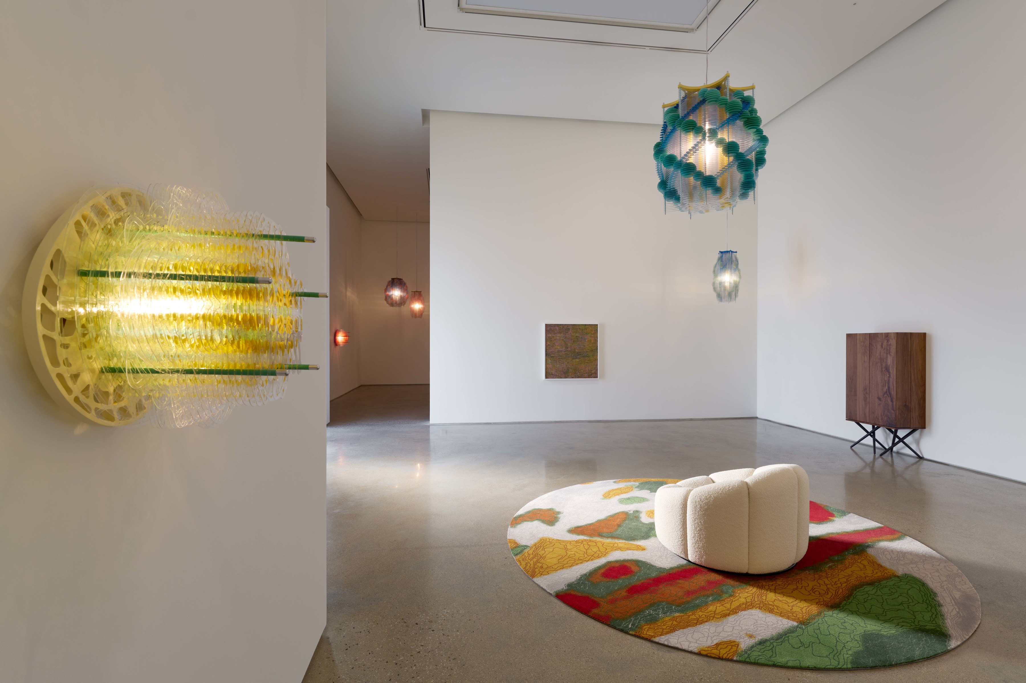 이번 전시에서는 파르도가 2023-2024년에 제작한 행잉(hanging) 램프 조각 및 월(wall) 램프 조각 14점이 직접 디자인한 수납장, 벤치, 카펫 작업과 함께 소개된다. 파르도의 시그니처 작업인 램프 조각은 그가 1980년대부터 지속해 온 연작으로, 색채를 탐구하기 위한 밑그림이자 독자적인 조각이며, 건축물의 내부를 밝히는 조명의 기능을 겸한다. 이번 램프 조각의 제작에는 레이저 커팅 기술이 활용되었으며, 그 형태는 분자, 벌집, 등마루 등 생물의 유연한 구조를 연상하게 한다.