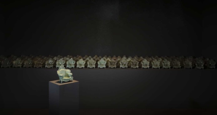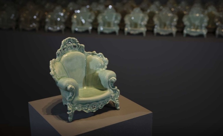 알레산드로 멘디니 경기도자미술관 《올해의 소장품》 《올해의 소장품》은 경기도자미술관 소장품 중 한 작품을 선정하여 소개하는 전시입니다.세계적인 이탈리아 디자이너 알레산드로 멘디니의 <프루스트 의자> 디자인과 故유근형·유광열(해강고려청자 연구소)의 청자 제작 기술을 접목해 탄생한 작품 <108번뇌>가 전시됩니다. <108번뇌>는 문화체육관광부·국제박물관협의회 한국위원회(ICOM KOREA)가 주최하는 ‘2025 박물관·미술관 주간 「뮤지엄×만나다」 공모’에 선정되었으며, 「뮤지엄×만나다」는 박물관·미술관이 소장한 우수한 문화유산과 그 속에 숨겨진 이야기들을 통해 문화적 가치를 만나는 프로그램입니다. 《올해의 소장품》을 통해 동서양의 거장과 전통과 현대의 만남, 디지털과 손의 조화를 통해 탄생한 현대 청자의 미감을 느껴보시기 바랍니다. 108번뇌 108 Agonies 한국 고려청자 색감에 매료되어 있었던 멘디니는 2009년 ‘청자 리디자인 & 리바이벌 프로젝트 Celadon Redesign & Revival Project’ 의 일환으로 故유근형·유광열(해강고려청자 연구소)의 청자 제작 기술을 통해 <푸르스트 의자>에 현대적 감각을 담아 <108번뇌>를 제작하였습니다. 청자 고유의 푸른빛을 내기 위해 철분이 함유되어있는 청자유약을 사용하고 가마 내부의 산소공급을 최소화하는 환원소성으로 제작합니다. 유약에 함유되어있는 금속산화물인 산화철은 산화소성에서 붉은색과 갈색을 띠지만, 환원소성에서는 산화제이철(붉은빛 - Fe₂O₃)에서 산소를 빼앗아 가면서 산화제일철(푸른빛 – FeO)이 되어은은한 녹색(비색翡色) 또는 푸른색으로 변하게 됩니다. <108번뇌>의 조형적 아름다움과 다양하게 변화되는 108개의 청자색감을 자세히 감상해 보시기 바랍니다.