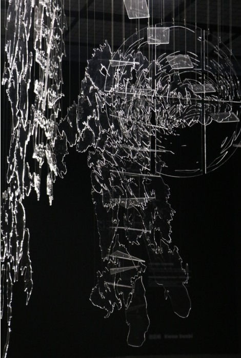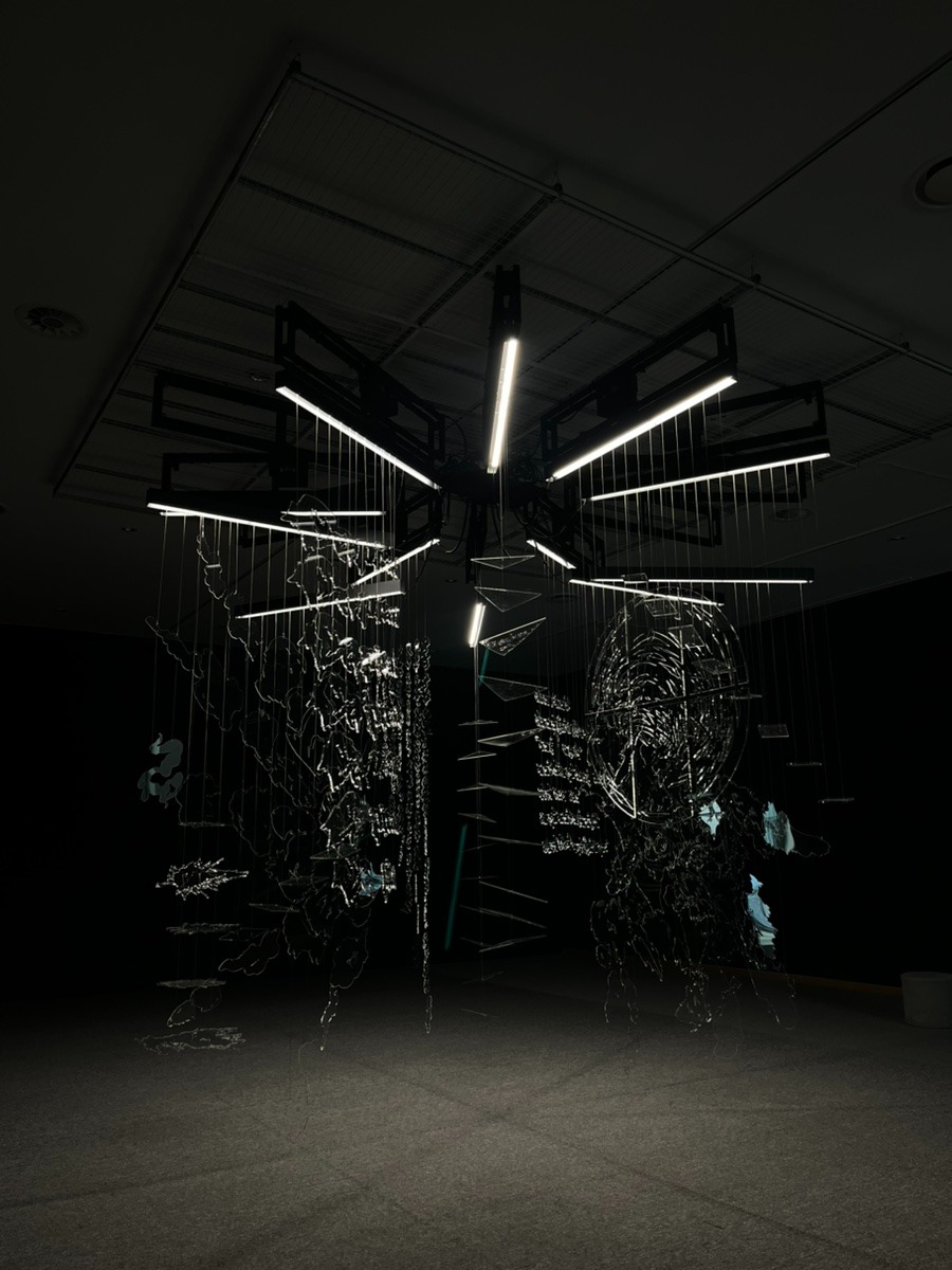 <노동의 지형학: 12개의 장면들> 아크릴, 와이어, LED, 모터, 각관, 무선헤드폰, 사운드 15min, 가변크기, 2021 제작 및 기술감독: 장호 (아이엠마니페스트)