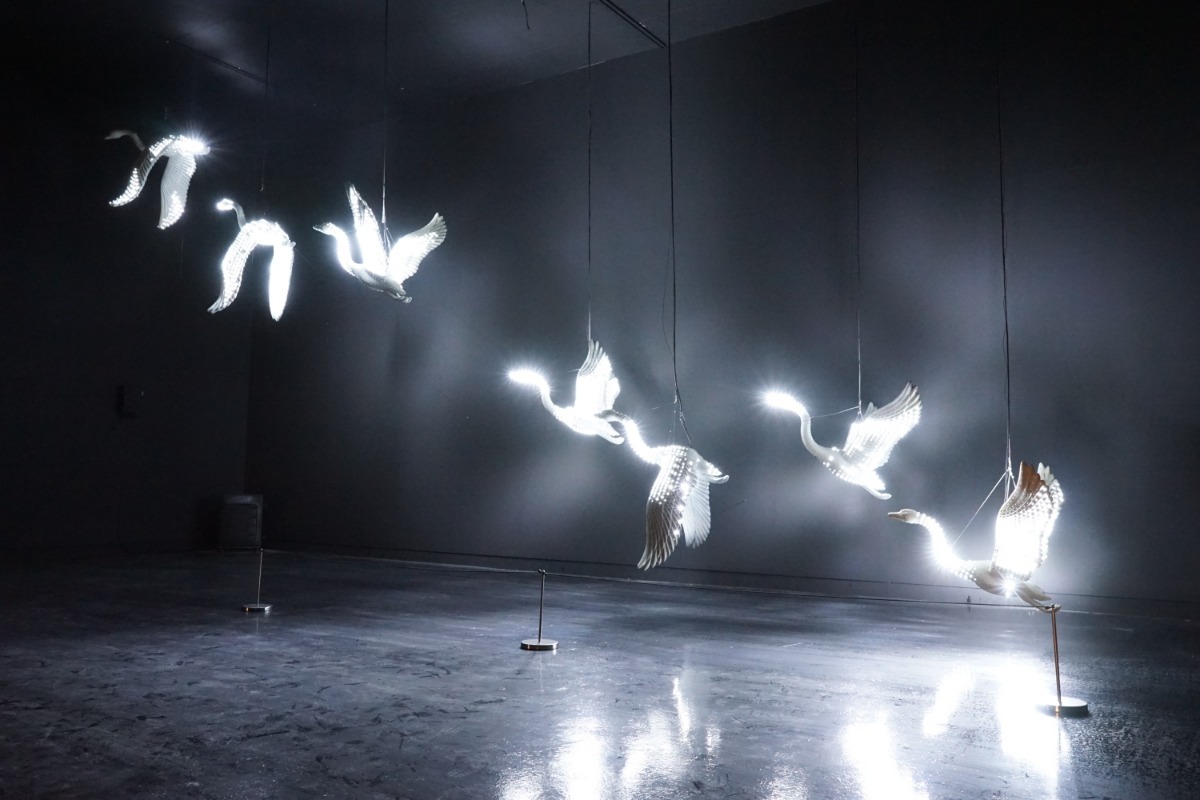 마지막으로 네 번째 시리즈는 〈기계 즉흥곡 Machine Impromptu〉 이다. 이 시리즈는 예술창작에서의 ‘우연성’을 인공지능 AI가 재현하는 방식을 탐구한 작품이다. 〈기계 즉흥곡〉은 어항 속 물고기의 자유로운 움직임을 감지하여, 이를 음으로 변환하고 인공지능 스피커가 화음을 넣어 하나의 음악으로 완성하는 작품이다. 물고기의 즉흥적인 동작은 우연이 가미된 악보를 만들어내며, 이는 인간의 창작 과정에서 발생하는 우연성을 떠올리게 한다. 이를 통해, 작가는 인간의 영감과 인공지능의 계산이 교차하는 지점을 탐구한다.