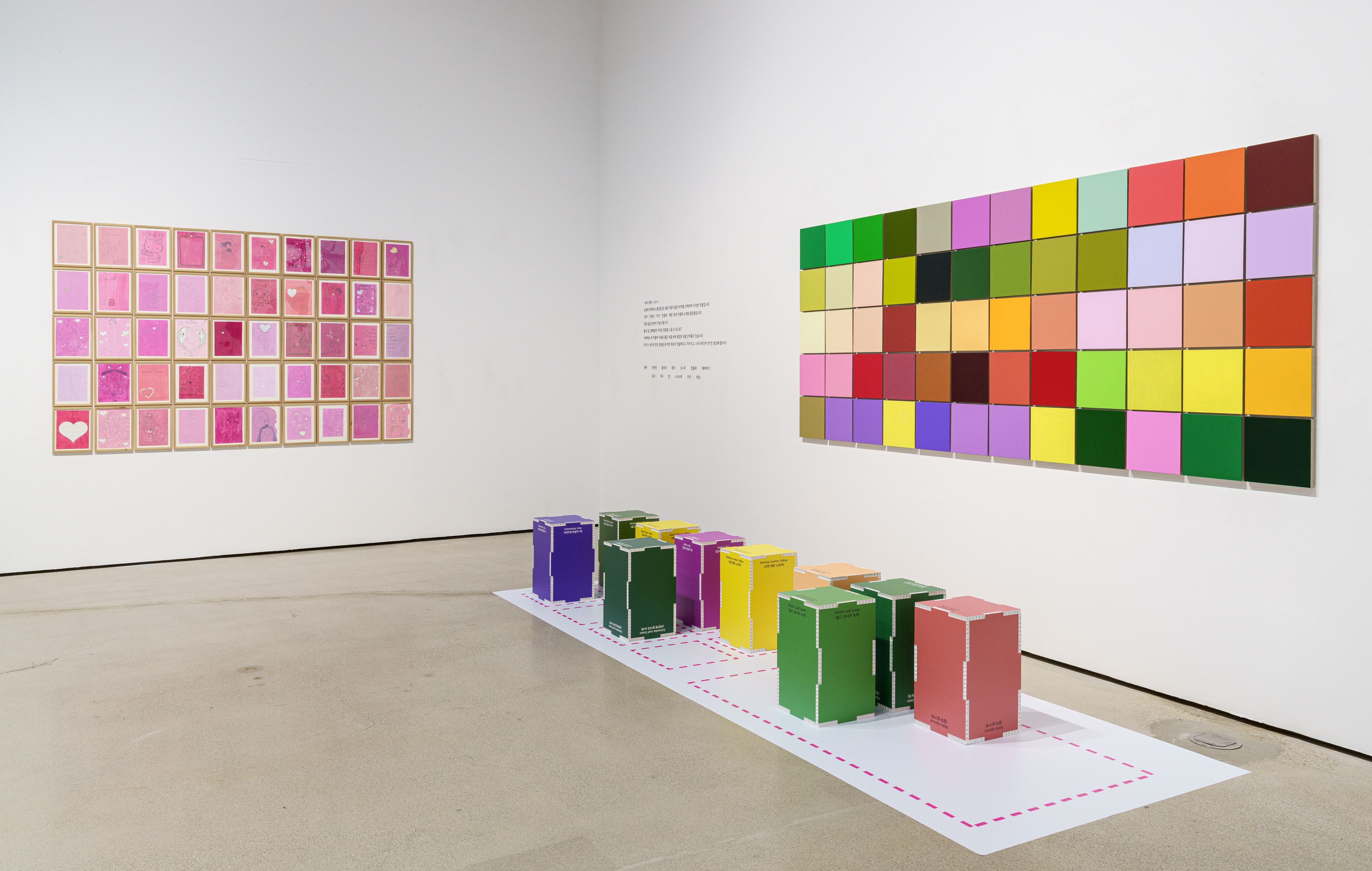 기다려-색! Ready set color 《기다려-색!》전시는 전남도립미술관이 ‘예술로 소통하는 열린 미술관’이 되기 위한 첫 어린이 전시입니다. 이 전시는 어린이뿐 아니라 모두가 함께 즐길 수 있도록 하기 위해, 누구에게나 익숙한 ‘색’을 주제로 하였으며, 눈으로 보는 것에서 더 나아가 여러 도구와 놀이 활동을 통해 스스로 예술을 느끼고 표현하는 즐거움을 온 몸으로 느낄 수 있도록 기획하였습니다. 우리는 과연 색에 대해 얼마나,어떻게 알고 있을까요? 누군가 정한 색에 대한 규칙과 이야기를 너무 쉽게 받아들이고 있지는 않나요? 매년 발표되는 올해의 색, 퍼스널 컬러, 색연필과 물감의 이름들... 전시에서는 색에 대한 정보와 지식을 아는 것 에서 더 나아가 ‘색’을 다루는 태도와 방식에 대해 다시 생각해보고자 합니다. 색은 언제나 똑같다 생각할 수 있지만, 시간에 따라 모습과 쓰임이 계속 바뀌어 왔습니다. 우리가 정답처럼 여겼던 색에 대한 규칙들도 사실은 예술가와 과학자들이 사회와 기술의 변화에 따라 만들어낸 것입니다. CMYK, RGB 같은 색의 기본적 방식들도 19세기 인쇄 기술이 발전하며 생겨난 이론입니다. 또한 시각 문화와 기술이 발전하고 유행이 바뀌며 과거에는 예쁘지 않다 여겼던 색 조합과 디자인이 오늘날 많은 사랑을 받기도 합니다. 전시에 참여한 다섯 명의 작가들은 색이 왜 그런 모습이고, 왜 그런 역할을 가지는지 질문을 던지기도 하고, 우리가 익숙하게 알고 있던 색의 규칙에서 벗어나, 색을 새롭게 바라보고, 특별한 방법으로 표현하며 전혀 다른 역할을 주기도 했습니다. 이런 방식과 생각은 우리에게 조금 낯설고 어렵게 느껴질 수도 있습니다. 그렇지만 작품과 전시장 놓인 활동지, 모양자, 색깔 블록 등과 함께 작품을 보고,작가의 생각을 온 몸으로 느끼고 따라해본다면 지금과는 다른 새로운 색의 세계를 만날 수 있습니다. 새로운 색의 세계를 만날 준비가 되었나요? 기다려-색! 우리가 갈게. *출처 및 제공: 전남도립미술관