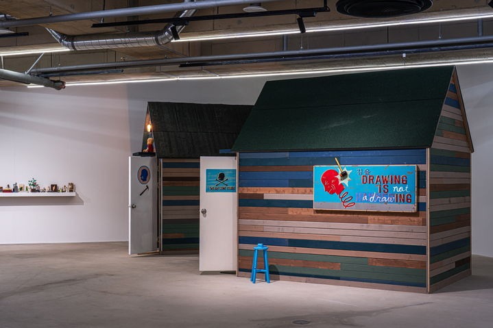 이번 전시에서는 작가의 작업실 두 채가 전시장 안에 재현됩니다. 지난 15년간 이어온 "Twilight Zone Studio" 프로젝트 중 가장 큰 규모이자, 프로젝트의 막을 내리는 자리입니다. 사비나미술관 공간의 특성을 반영해 작가의 작업실을 재현하고, 작업실을 중심으로 300여 점의 회화, 입체 작품을 설치함으로써, 이곳은 ‘Twilight Zone’, 즉 현실과 가상, 이상과 실제가 교차하는 공간이 됩니다.