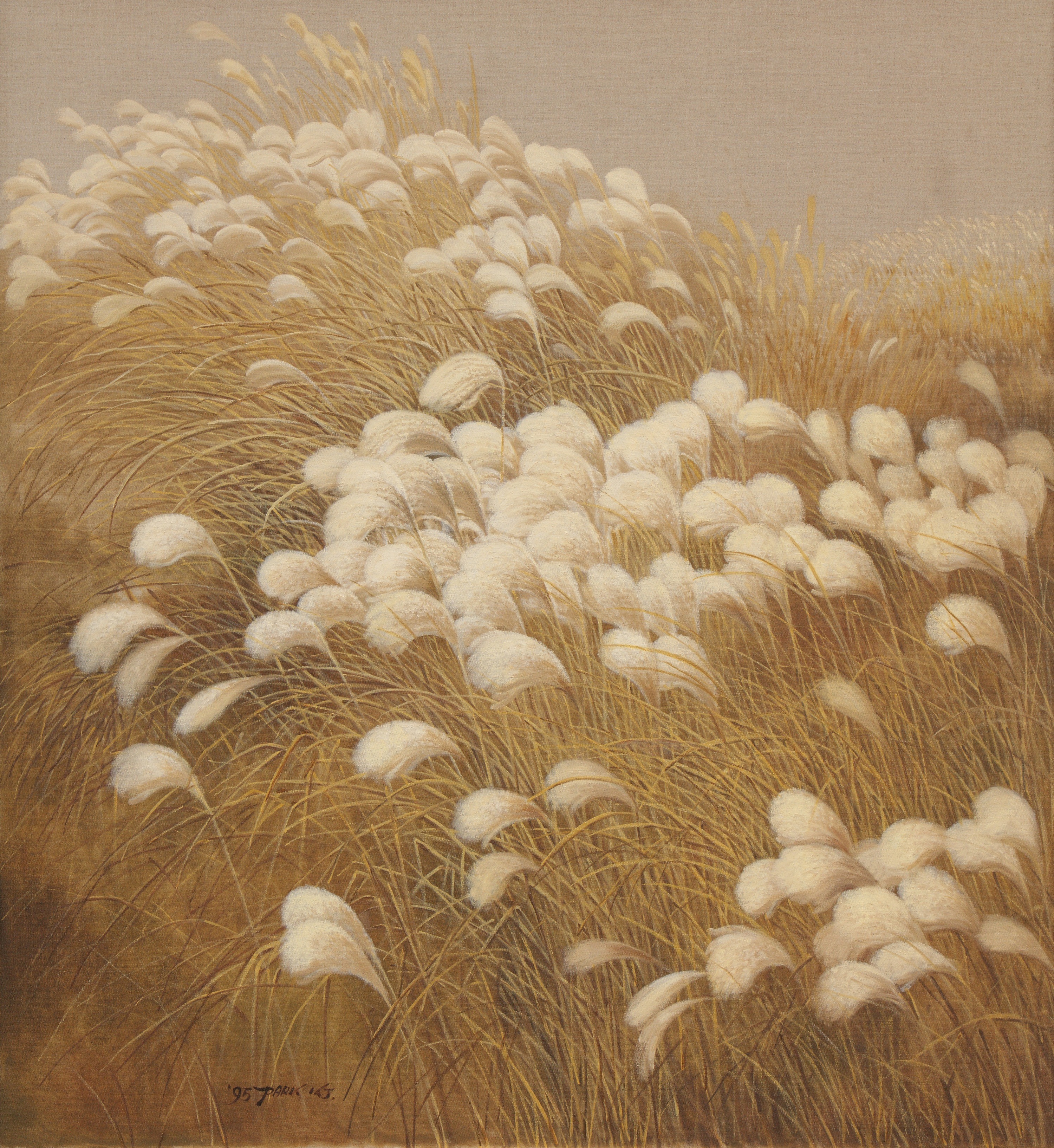 박광진: 기다린 계절 《박광진: 기다린 계절》 전시는 박광진(1935~) 화백이 그려낸 제주의 가을과 겨울 풍경을 한자리에서 만날 수 있는 특별한 시간입니다. 1964년 처음 제주를 찾은 이후, 박 화백은 제주에 작업실을 마련하고 틈이 날 때마다 섬을 찾아 제주의 자연을 화폭에 담아왔습니다. 이번 전시에서는 들녘에 가득한 억새와 울긋불긋한 단풍, 그리고 겨울이 되어 하얀 눈이 뒤덮인 숲이 펼쳐집니다. 박광진 화백은 자연이 빚어내는 경이로움을 사실적인 풍경과 더불어 추상적으로 작품화하였습니다. 《기다린 계절》은 그가 한 해 한 해 반복적으로 자연에 바치는 헌사를 그리기 위해 마주했던 순간들과 지금 우리에게 다가온 계절이 맞닿는 공간이 될 것입니다. 제주의 가을은 단풍과 억새로 특히 빛납니다. 시인 서정주는 「푸르른 날」에서 ‘저기 저기 저 가을 꽃 자리 초록이 지쳐 단풍드는데’라며 가을의 정취를 노래했습니다. 늦가을이 되면 나뭇잎 속 엽록소가 사라지고 붉거나 노란빛이 드러나는데, 어쩌면 그것은 자연이 원래 품고 있던 색일지도 모릅니다. 억새 또한 가을을 대표하는 풍경입니다. 바람에 흔들리는 억새 군락은 은빛 물결처럼 대지를 덮으며, 마치 바다의 일렁임을 보는 듯한 장관을 선사합니다. 박광진 화백은 한라산과 오름의 단풍, 그리고 억새를 자주 그렸습니다. 특히 1990년대 발표한 〈자연의 소리〉 연작에서는 풍경화에 대한 깊이 있는 탐구가 돋보입니다. 이 시기의 ‘억새’ 작품에서는 ‘자연의 소리’를 회화적으로 표현하기 위해 여러 가지로 변주되었습니다. 수직성을 강조하여 억새 줄기를 화면 가득 채우거나, 새로운 줄무늬 요소를 도입하기도 하였고, 산과 억새를 기하학적 도형으로 단순화하는 등의 실험적 시도가 이루어졌습니다. 이를 통해 이전의 차분한 붓질과 절제된 색채 중심의 사실적 풍경에서 변화된 작품 세계를 확인할 수 있습니다. 박광진 화백의 겨울 풍경화들은 따뜻한 느낌이 특징입니다. 화면 하단에서 중반부로 둥글게 가로지르는 길을 따라 시선을 이동하면, 살구색, 분홍색, 초록색으로 덩어리감 있게 그려진 숲이 드러납니다. 온통 하얀 눈이 가득하고, 앙상한 나뭇가지가 보이는 겨울 숲이지만 그림이 포근하게 느껴지는 까닭은 원경의 숲속 빛깔이 전하는 따뜻한 온도 때문일 것입니다. 평생 ‘아름다운 자연’을 그려온 박광진 화백. 이번 《박광진: 기다린 계절》에서 다양한 화면 구성과 리듬 속에 담긴 웅장하면서도 섬세한 자연의 아름다움이 관람객 여러분의 마음 깊이 스며들기를 바랍니다. *출처 및 제공: 제주 현대미술관