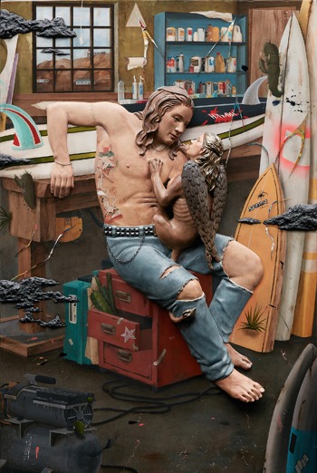 신건우ㆍ이윤성: Nu Defiance 강주연(GalleryJJ Director) “이미지는 상호관계의 바다에 휩싸여 놀라울 정도로 적절하게 새로운 틈새의 장으로 빨려 들어간다.” - 진 시겔jeanne siegel, 『현대미술의 변명』 갤러리JJ는 동시대미술에 있어서 과거 이미지의 자유로운 차용과 해체적 표현방식에 관심을 갖고 신건우, 이윤성 작가의 전시를 마련한다. 전시는 이들의 작업이 내러티브 구조를 통해 전통적 요소와 동시대성을 끊임없이 연결하고 해체하면서 다층적인 의미의 망을 생성함에 주목한다. 오늘날은 수많은 원천으로부터 급속도로 유입되는 정보에 지속적으로 노출되면서 이분법적 경계가 모호해지고 문화적 혼종화가 한층 가속화되고 있다. 롤랑 바르트에 의하면 ‘텍스트는 출처가 불투명한 글들이 뒤섞이고 충돌하는 다원적인 공간으로서 문화의 수많은 핵심들을 차용하여 만들어진다.’ 신화와 역사 등으로부터 불러낸 재현적 요소를 작품에 끌어들이는 신건우와 이윤성의 작업은 기존의 텍스트를 새로운 맥락에서 재사용하면서 차용과 몽타주, 병치와 전위의 전략이 두드러진다. 서로 다른 맥락의 이미지나 사물, 양식을 병치 혹은 중첩시키는데, 이렇게 시공을 넘나드는 이질적인 요소들의 겹침은 서로 간의 개입으로 인해 다양한 방식으로 해석되고 독해된다. 돌이켜보면, 1980년대를 전후하여 추상미술에 의해 폐기되었던 형상성의 부활과 함께 과거의 미술과 대중매체로부터 이미지를 끌어다 쓰는 ‘차용’ 전략이 빈번해졌다. 당시의 정치, 문화 등 모든 영역에서 만연했던 노스탤지어는 미술에서 내용이든 양식이든 모든 역사적 유산을 차용하는 것으로 나타났으며, 종종 과거의 이야기를 취하여 서사로서 불연속적인 동시에 현재와 관련 있게 다루어졌다. 작가 엔조 쿠치의 경우 이러한 이미지들이 등장하는 이유가 위기로 가득 찬 세계에서 “매달려있을 만한” 견고한 어떤 것을 제공해주기 때문이라고 말한다. 신건우는 전통적인 서술방식으로 통합되지 않는 개별 이미지들을 섞어놓으며 이를 회화와 조각이 겹치는 흥미로운 방식으로 몰고 간다. 그는 자신의 경험과 기억의 이미지로부터 의식과 무의식의 세계 혹은 현실과 이상 사이의 경계를 유희하면서, 이를 평면과 부조, 입체를 넘나드는 작업으로 구현한다. 통일성이 결여된 부조리한 장면은 현대생활의 혼란스러운 관계에 대한 진술이자 모순이 가득한 세상과 우리의 삶에 대한 은유이다. 이윤성의 작업은 서양고전과 만화라는 전혀 다른 문맥을 참조하여 하나의 회화적 표면에서 교차시킴으로써 대중문화의 정서와 순수회화의 형식을 결합한 복합적인 양상으로 특성화된다. 그는 대상이 되는 이미지 자체가 가진 힘과 역사에 주목하여 이를 현재를 살아가는 작가적 상상력과 표현방식으로 보여준다. 이번 전시는 평면과 부조, 조각 등 다양한 매체로 구성되며, 신건우의 신작과 이윤성의 에로스와의 사랑을 테마로 하는 프시케 시리즈를 새로 선보인다. 창의적이고 특별한 것은 기존의 것과 전혀 관련이 없는 것이라기 보다는 익숙하고 일상적인 것을 다르게 바라봄으로써 얻을 수 있다. 전시를 통해 동시대적 예술 어휘를 가늠하는 동시에, 신화적 상상력이 주는 즐거움과 익숙하고도 낯선 감각으로 새롭게 인식되는 세계의 재발견을 기대한다. “새로운 질서의 탄생, 새로운 지역유형의 형성, 새로운 형태의 결정화, 문화의 재배치…” - 피터 버크Peter Burke, 『문화 혼종성』 /Testimony “나의 작업에서 등장하는 수수께끼 같은 이미지들은 스스로를 과장하고 왜곡하면서 이미 존재했으나 인식되지 못했던 내러티브 위에 무중력의 상태로 부유한다.” -신건우의 작가노트- 하나의 화면 속에 알 듯 모를 듯한 인물들과 특정 사건들이 뒤섞여 등장하는 수수께끼 같은 상황은 관객의 발길을 멈추게 한다. 파편적이고 찢어진 틈을 비집고 불쑥 솟아나오기도 하는 이미지들은 들여다 보면 동서양의 종교와 신화, 고전작품, 현대사회의 장면들로서 서로 전혀 연관이 없어 보여 꿈처럼 비현실적이다. 이러한 작업은 작가가 경험하고 인식했던 기억들의 이미지를 조합하고 현실의 모티브로 재-이미지화한 것으로, 이는 무의식 속에 놓여있던 미처 인식하지 못했던 것이나 타자와 서로 다른 인식의 간극을 발견하고 이것을 의식의 전면으로 다시 끌어올리는 일이다. 이때 예술적 상상력이 더해지면서 자신이 관심 많았던 문화와 역사 이미지들로서 저마다의 사연을 안고 떠오르게 된다. 다양한 역사적 영향과 참조를 되살려내는데 있어서 그가 불러낸 과거는 피에타 도상에서 ‘오이디푸스와 스핑크스’, 불교의 사천왕 그리고 현실의 작가와 친구까지 망라한다. 이렇게 다른 시간과 공간에서 온 서로 뒤엉킨 이질적 형상들은 알레고리를 형성한다. 알레고리는 가장 확고한 사실주의를 가장 초현실주의적 바로크 양식으로 전환시킬 수 있는 능력이 있다. 그가 무의식 속에서 건져 올린 알레고리적 도상들은 무언가를 암시하고 다른 의미로 교체되며, 관객의 다양한 해석을 통해 다의적 층을 가지게 된다. 의식의 전면으로 끌어올려진 사소하게 간과되었던 미시