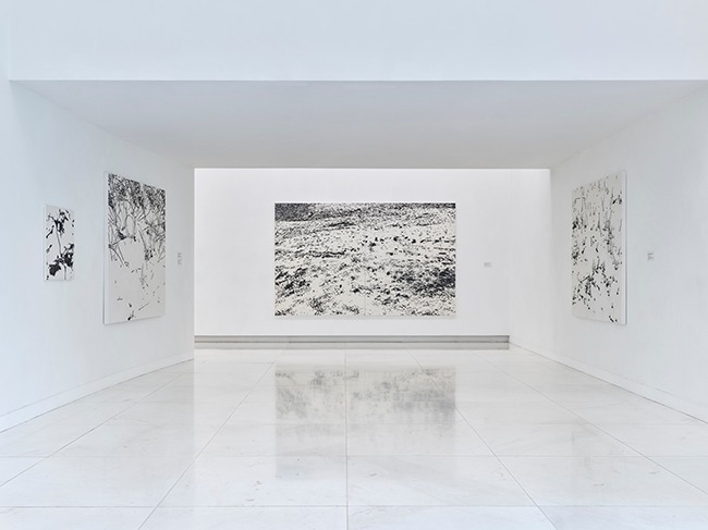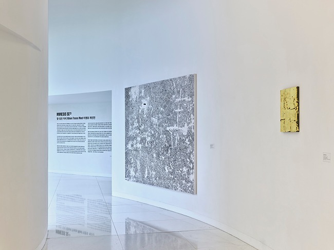 미메시스 아트 뮤지엄은 이영호의 개인전 「MIMESIS SE 23: 맞-닿은 자리 Where Traces Meet」를 개최한다. 이영호는 일상에서 마주하는 대상이 현존하는 방식을 탐구해 왔다. 작가는 관찰한 존재가 고정된 실체가 아닌, 끊임없이 변모하는 현상 속에 있다고 보고 대상의 주변부에서 생성과 탈각의 흔적을 포착한다. 그의 작업 방식은 조리개를 활짝 열고 셔터 속도를 늦춰 피사체의 미묘한 흔적까지 기록하는 촬영 기법을 떠올리게 한다. 이는 주변의 사소한 것을 있는 그대로 바라보고 그 본질을 고스란히 기억하기 위한 방식으로 볼 수 있다. 작업 초기에는 세포처럼 미시적이고 드러나지 않는 경계의 이면에 시선을 두었으며, 점차 피부나 껍질과 같은 경계의 표면으로 시야를 확장해 나갔다. 이번 전시는 최근작에서 초기작으로 거슬러 올라가는 구성을 통해 작가가 대상의 흔적을 탐구해 온 여정을 되짚어 보고자 한다. 전시의 제목 <맞-닿은 자리>는 일상의 평범한 대상을 온전히 바라보려는 이영호의 포용적 태도를 함축한다. 작가의 작업은 자신과 사물의 시선이 마주하고 닿았던 순간으로부터 출발한다. 서로가 바라보고 보이는 관계에서는 주체의 입장에서 상대를 객체로 단정 짓지 않고 스스로와 동등한 존재로 인식하게 된다. <맞-닿음>은 무심코 지나치는 것과 마주 봄이 이루어진 찰나를 내포하며, 시선의 접촉을 촉각적으로 드러낸다. 작가의 시선이 머문 곳은 흔적이 쌓인 공간이자 시간이 축적된 <자리>다. ㅡ 최연 / 미메시스 아트 뮤지엄 큐레이터 ‘MIMESIS SE’는 ‘MIMESIS Solo Exhibition’의 약자로, 미메시스 아트 뮤지엄에서 열리는 23번째 개인전임을 뜻한다. 2.섬성(islandness)_장지에_목탄,_먹,_돌가루,_140_.2_X_194cm,_2022_이영호_CV텍스트_옆페이지_.jpg 이영호는 현대 사회에서 이분법적으로 구분될 수 없는 다양한 영역과 다름을 끌어안으며 유연한 경계에 관심을 가져왔다. 작업 초기에 작가는 대상의 드러나지 않는 내부를 응시했다. 생명의 최소 단위인 세포를 직접 관찰하고 화면에 옮긴 것이 한 예다. 그의 작품 속 자가 세포는 다른 것에 종속되지 않고 그 자체로 성립하는 한편, 다른 세포와 존재를 맺기도 한다. 이와 더불어 그는 「감춰진 것을 드러내는 Interprète」(2018)에서 낮과 밤이 교차하는 찰나, 수평선 근처에서 드물게 관측되는 녹색 광선을 소재로 삼아 서로 다른 세계가 맞닿은 순간을 담아내기도 했다. 이후 작가의 관심은 안과 밖, 사물의 표면으로 확장되었다. 이는 「감춰진 것을 드러내는 Interprète」 연작 중 자신 주변의 장소를 바탕으로 한 작품에서 구체화된다. 백령도의 북방 한계선 부근, 육지와 바다가 만나는 갯벌, 눈으로 뒤덮인 자연 등 그 주변에서 발견되는 사물의 껍질과 표층에 그의 시선이 맺힌다. 작가는 인간 중심적 시선으로 대상을 재단하지 않고, 다양한 식생이 뒤섞이고 오랜 시간 축적과 침식을 거듭한 자연의 흔적을 응축했다. 아울러 「섬성 Islandness」(2022)에서 작가는 일상 속 인공 구조물에서 나타난 현상을 채집했다. 버스 정류장의 유리 지붕에 고인 빗물과 증발 후 남은 침전물이 작품의 모티프가 되었다. 생태계를 이루는 작은 섬처럼 보이는 화면을 들여다보면, 이는 흰 바탕에 불규칙하게 찍힌 점들의 집합체라는 것을 알 수 있다. 관람자는 작가가 새긴 흔적을 단일한 이미지가 아닌 시간과 생태 흐름이 어우러진 장면으로 경험하게 된다. 이영호의 작품에는 재료적 측면에서도 존재가 형성되고 소멸하는 본질적인 과정이 고스란히 담겨 있다. 작가는 평면처럼 보이는 화면에 <지지체>를 구축한다. 장지에 아교와 호분, 돌가루가 반복적으로 칠해지고 건조되며, 그 위에 목탄이 쌓이고 먹이 침투되는 방식이다. 자연 재료가 켜켜이 지층을 축적하면서 지지체 사이에 공기가 순환하고 호흡하는 구조를 갖게 되고, 동시에 불에 타 생을 다한 나무는 작업의 재료가 되어 생명 순환의 과정을 이어 간다. 이처럼 그의 작품은 보이지 않는 시간의 흔적을 물질로 환원한 것과 같다. 목탄이 남긴 미세한 입자와 파편까지 화면의 일부로 수용하는 이영호의 태도는, 그가 세계를 관계와 과정의 장으로 이해하고 있음을 드러낸다. 그의 작품은 완결된 하나의 형상이 아니라 불확실한 대상들이 어떻게 상호 작용하며 지속하는 힘을 갖는지, <우리>가 살아 움직이는 현장을 보여 준다.