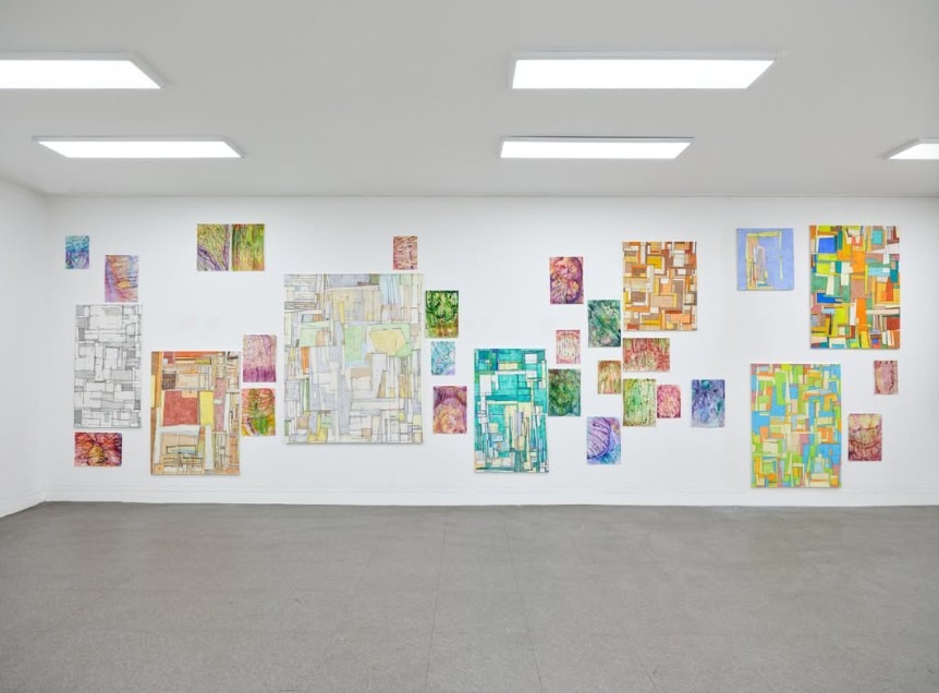 빈 화면 앞에서 먼저 선을 긋고, 그 선이 만들어낸 조건에 반응하며 다음 동작을 이어간다. 이 선은 대상을 지시하기보다 손의 힘과 속도가 남긴 흔적으로 작동한다. 이러한 흔적들은 서로를 겹치며, 미세한 충돌과 조정의 흐름 속에서 회화와 병렬적인 사고의 장을 형성한다.
