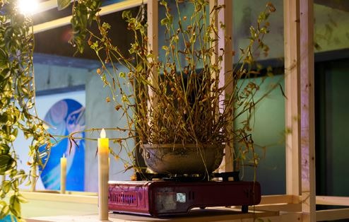 신앙의 신화가 깨어진 자리에서 우리에게 필요한 진리와 깨달음, '감로'는 무엇에서 기대할 수 있을까? 작가는 감로탱화에서 아귀와 함께, 그 뒤편에 보이는 제단에도 주목한다. 천도제 제사에 공양된 음식, 감로미(甘露米)는 아귀가 먹을 수 있다고 한다. 「자기이해를 위한 의례」의 선반에 놓인 물체들은 작가의 이전 프로젝트, '오복시장'을 통해 구한 사물들이다. 여기에서는 작가가 (아귀처럼 굶주리고 욕망하는 현대 사회의 인간인)자신을 포함한 우리들에게 공양하는 제물의 역할을 하면서도 거대한 자본이나 환경 앞에서 연약해지는 인간의 욕망을 보여주는 "동시대판 감로화"의 도상이기도 하다.