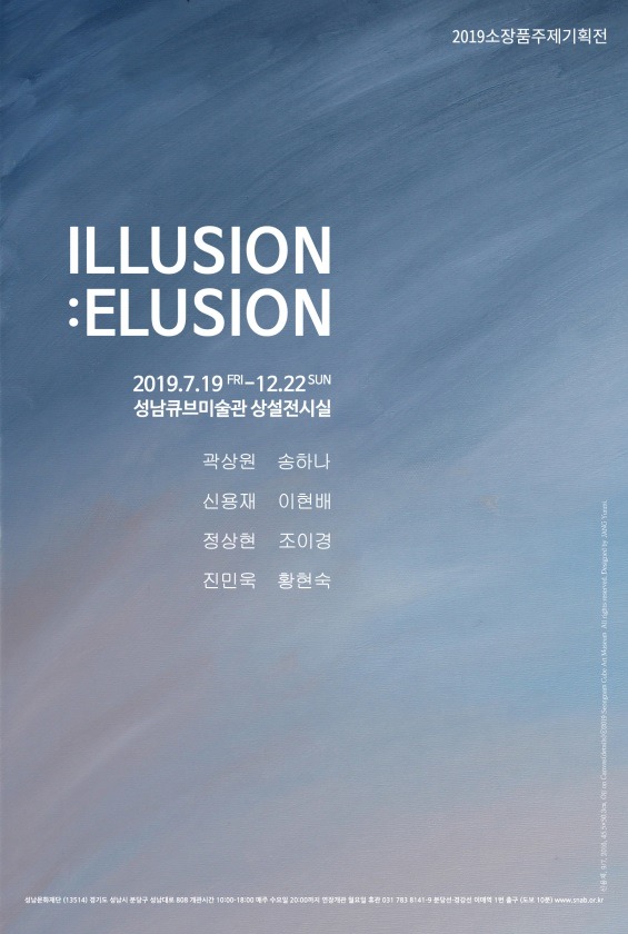 • 			성남큐브미술관 상설전시실에서 2019소장품주제기획전<ILLUSION: ELUSION>을 개최한다. 성남큐브미술관의 소장품을 전시를 통해 일반에 공개하고 성남시민의 세금으로 운영되는 미술관의 공공성을 대내외적으로 알리고 확인하기 위한 사업이다. 성남큐브미술관 소장작가 이현배, 송하나, 정상현, 조이경, 황현숙의 소장품과 전시 주제와 부합하는 외부작가 곽상원, 신용재, 진민욱을 선정했다. 각기 다른 색을 지닌 작가 8명이 보여주는 새로운 조화와 다채로운 모습을 보여주고자 하였다.