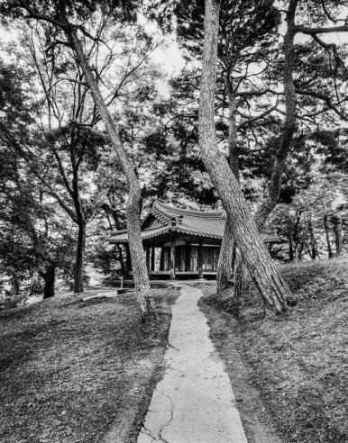 김심훈 작가는 10여 년 동안 우리나라 곳곳을 다니면서 200여 곳의 누정을 카메라에 담았다. 누정은 누각樓閣과 정자亭子를 아우르는 용어이며 자연 경관이 좋고 사방이 터진 곳에 지어졌다. 보통 누각은 멀리 넓게 볼 수 있도록 이층 구조로 높게 지었으며 정자는 누마루가 있는 공간으로 단층으로 지어졌다. 누각은 공적 집단의 수양 공간으로, 정자는 개인 수양을 위한 공간으로 이용되는 경우가 많았다. 이렇듯 누정은 혼자 또는 여러 명이서 풍류를 즐기며 정신 수양의 장소로 활용되었던 건축물이라고 할 수 있다. 누정의 기능과 역할을 감안할 때 누정에 있어서 가장 중요한 것은 누정이 건립되는 위치이다. 한국의 누정이라는 건축물은 건축물로서 스스로 그 위엄을 드러내기 보다는 주위의 자연과의 조화 속에서 완성되는 건축물이기 때문이다. 김심훈 작가는 누정과 자연이 잘 어울려지고 누정의 아름다움과 본질을 드러낼 수 있는 사진을 찍기 위해 누정과 주위 경관이 조화롭게 드러날 때를 포착하여 작업을 하였다. 이러한 작가의 노력과 의지가 작품 속에 그대로 드러난다. 작가는 2008년 수원의 방화수류정訪花隨柳亭을 찍은 것을 시작으로 한국의 누정에 관심을 가지고 작업을 하였다. 작가는 한국 건축의 특징이 그대로 응축되어 있는 누정을 통해 한국의 건축미를 사진을 통해 구현하고자 하였다. 이번 전시는 선비의 풍류, 자연과의 어울림, 누정 문학으로 구성되어 있다. 김심훈 작가는 흑백의 간결한 누정사진을 통해 한국건축의 아름다움과 더불어 누정과 함께 했던 선비의 풍류를 드러내고자 하였다. 선비의 풍류 The Elegance and Style of Confucian Scholars 한국의 누정에는 옛 선비들의 기품 있는 풍류가 스며져 있다. 선비들은 누정에서 자연을 벗 삼아 스스로를 수양하는 장소로 이용하였다. 선비들은 산수가 좋은 곳에 누정을 짓고 자연의 아름다움을 즐기고 시를 쓰고 휴식을 즐기고, 후배 양성을 위해 강학講學에 힘을 쏟았다. 때론 정치적 견해와 사회적 울분에 대해 논의하고 서로를 달래는 선비들의 교류와 문화적 공간의 장場이자 소통의 장場이었다. 김심훈 작가는 누정 안에 내재되어있는 올 곧은 선비의 삶과 정신을 흑백의 절제된 시선으로 드러내고 있다. 자연과의 어울림 Harmony with Nature 누정은 자연 속에서 자연을 벗 삶아 자연에 순응하고자 하는 자연합일自然合一이라는 전통적인 한국의 정서가 잘 나타난 건축 공간이다. 또한 누정의 가장 큰 목적은 건축물 자체의 쓰임보다는 누정 안에서 밖을 감상하기 위해 지어졌다. 그렇기 때문에 외관의 화려함 보다는 누정에서 바라보는 주위의 경관과 위치가 중요함으로 자연 경관을 해치거나 너무 도드라지지 않고 자연과 주위 경관과 자연스럽게 공존하면서 자리를 잡았다. 김심훈 작가는 누정이 가지고 있는 공간의 특수성을 드러내는 작업을 위해 누정을 찍을 때 자연과 누정의 조화로움을 작품 속에서 구현하고자 했다. 누정문학(樓亭文學) Nujeong Literature 누정은 선비들의 문화적, 정치적, 학문적 교류의 장이었다. 누정에 문인들의 발길이 이어지면서 서로 시를 짓고 그 시에 대한 답시를 지으면서 자연스럽게 누정문학이 형성되었다. 누정문학은 누정의 건립 배경 및 의의, 누정 주위의 경관, 누정 생활의 멋 등을 주제로 하였다. 전남지역의 대표적인 누정문학 공간으로는 천혜의 경관인 영산강변을 중심으로 하는 나주, 증암천甑巖川을 중심으로 하는 담양이 있다. 전라남도 나주에서는 고려 시대에 건립한 만호정挽湖亭, 쌍계정雙溪亭에서 부터 조선시대 건립된 영모정永慕亭, 벽류정碧流亭, 장춘정藏春亭, 등 많은 누정을 중심으로 학문을 논하고 강학과 더불어 시문詩文을 창작하고 시단詩壇이 형성되었다. 전라남도 담양에서는 조선시대 대표적 문인들이 조성한 정철鄭澈의 송강정松江亭, 양산보梁山甫의 소쇄원瀟灑園, 송순宋純의 면앙정俛仰亭, 전신민全新民의 독수정獨守亭, 임억령林億齡의 식영정息影亭 등의 누정을 중심으로 가사문학이 활성화 되었다. 김심훈 작가는 흑백의 간결한 누정사진을 통해 한국건축의 아름다움과 더불어 누정과 함께 했던 선비의 풍류를 드러내고자 하였다.