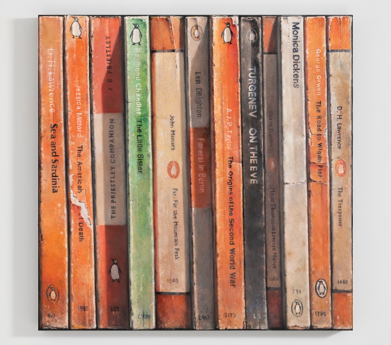 서양화가 이진용의 초대전 <메타 콜렉션>전이 갤러리 분도에서 열린다. 같은 장소에서 2012년에 열렸던 <쓸모 있는 과거>, 2015년에 열렸던 <5015. 158. 43>에 이어 세 번째로 벌어지는 개인전 <메타 콜렉션>은 그가 작년 후반기부터 새로운 구상으로 시작한 작업을 공개한다. 이 신작은 펭귄 출판사가 펴낸 책을 그린 회화로, 굉장히 오래된 빈티지 북을 대상으로 한 작품들이다. 이진용 작가는 자신이 수집한 희귀물품들을 본인의 작품에 끌어들이는 작품으로 널리 알려져 있다. 그는 국내외 전시나 여행을 목적으로 방문지에 갈 때마다 그 지역의 빈티지 가게들을 사전 조사하고 수소문해서 찾아 다녀왔다. 그곳에서 그는 여러 가지 물건을 구해서 돌아왔는데, 그렇게 수집한 물건들의 종류나 양은 굉장히 많을뿐더러 그 가치 또한 크다. 그것들은 이번 전시의 주제가 된 오래된 책에서부터 시계와 완구류, 차와 다기류, 가방이나 문구류, 화석과 도자기류에 이르기까지 매우 다양하다. 작가가 벌이는 전시는 이 물건들을 사실적으로 묘사한 회화작품으로 등장시키기도 하고, 틀 속에 넣고 레진으로 굳힌 독립된 연작으로 공개되기도 한다. 또 어떤 경우에 그것은 직접 설치작품처럼 놓여 다른 작품들과 함께 전시되기도 한다. 분도에서 있었던 첫 번째 전시 <쓸모 있는 과거>에서는 가방과 도자기 콜렉션을 화폭에 옮긴 회화작품과 레진 연작을 주로 선보였다. 3년 뒤 <5015. 158. 43> 전시에서는 캐스팅한 낱개 조각에 한지를 입히고 붓으로 활자체를 그린 무수한 가상의 활자본들을 부조 형식으로 완성한 작업을 공개했다. 엄청난 시간과 자본과 노력이 투여된 활자 연작은 인류의 문명사와 작가의 개인사를 연결한 기획으로 시도된 바가 있다. 이번에 새로 벌어지는 <메타 콜렉션> 전시에서는 빈티지 펭귄북스를 소재로 삼은 신작회화 이외에도 기존의 작업 중에서 레진 연작도 함께 공개된다. 레진 연작은 올해 상반기에 부산시립미술관에서 열린 <반복과 차이>전에 출품되었던 작품들과 이후 새로 완성한 작품들 가운데 선별된 것들이다. (윤규홍, Art Director/예술사회학) 메타 콜렉션 : 펭귄북스 평론의 정상적인 성격을 벗어난 이 글에서, 먼저 필자인 본인 이야기부터. 내가 펭귄 출판사에서 나온 책들(Penguin Books)을 알게 된 건 대학생이 된 다음이었다. 그 시절은 한국에 그 책들이 번역되어 출판되기 전이었다. 칼 맑스와 지그문트 프로이트의 저서, 예컨대 자본론, 정치경제학 수고, 문명 속의 불만, 꿈의 해석 같은 책을 읽고 있노라면 번역자가 주석으로 달아놓은 설명에 “펭귄 출판사 판본”이란 글귀가 종종 눈에 띄었다. 잘 모르지만 펭귄출판사는 굉장히 오래되고 심오한 학술서적들을 가려서 찍어내는 출판사라는 생각이 내 머릿속에 박혔다. 그건 전부 사실이 아니었다. 펭귄북스는 1930년대에 영국 런던에서 출발했으며, 엄청나게 폭넓은 분야를 다루는 출판사란 걸 알게 되었다. 헌 책방에 어쩌다 한 꾸러미씩 나오는 주황색 영문판 소설도 이 출판사 책이란 것 또한 알게 됐다. 클래식 음악계에 도이치 그라모폰(Deutsche Grammophon) 음반사가 있다면, 출판계엔 펭귄북스가 있었다. 오랜 시간에 걸쳐 현기증이 날 정도로 모든 장르를 평균 이상의 고른 수준으로, 또 새로운 판본으로 비싸지 않게 찍어내는 건 두 회사의 공통점이다. 하나의 문화 아이콘이 되어버린 펭귄의 도상과 함께 개정판이 나올 때마다 새 표지로 공개되는 이미지는 그 자체가 미술이다. 오래되어 낡은 펭귄의 책들은 전문 수집가들을 만들었다. 그냥 책을 사서 모으기 좋아하는 애서가들이 아니라 펭귄출판사의 책들, 더구나 누렇게 변색되고 표지가 너덜거리는 빈티지 펭귄북을 모으는 사람들이 꽤 있다. 그 취미가 나로서는 다가설 수 없는 경지다. 나는 낡은 운동화도 신을 수 있고, 빈티지 와인도 마시면 되지만, 내게 오래된 책은 다른 대체재가 흔할뿐더러 사용가치가 낮은 유물 같다. 그 점이 교환가치가 사용가치를 압도하는 물건인 모양이다. 어쩌면 화가 이진용이 펭귄북스에 빠져든 건 당연한 일 같기도 하다. 하지만 동시에 그를 펭귄북스 콜렉터라고 부를 수 없는 이유에 관해서도 우리는 잘 알고 있다. 그는 여러 고서적을 비롯해서 가방과 도예품과 시계와 기념품, 그리고 문구류와 장난감과 액세서리, 또한 내가 아직 모르거나 미처 못 본 종류에 이르기까지 엄청난 종류와 분량을 모은다. 이 중 어느 한 가지만 모았더라도 집안 기둥뿌리가 뽑힐 지경인데, 방대한 양과 질은 그의 라이브러리를 목격한 사람들을 놀라게 한다. 그것들을 여러 채의 집에 나누어 놓을 수 있는 자산은 또 다른 차원일 터이고. 그가 세계 여러 곳을 다니며 모은 물건들은 그것이 제작된 시간과 공간을 이곳으로 전한다. 전달 방법은 역시 회화다. 그는 묘사력이 뛰어난 화가다. 당연히 이진용 작가의 그림은 사실주의에 바탕을 둔다. 하지만 작가는 이런 나의 말에 동의하지 않을 것이다. 나는 작가가 지닌 그런 언술을 허세라고 생각했다. 이번 전시에 앞서 같은 장소에서 삼사 년의 시차를 두고 벌어졌던 두 번의 개인전을 치르며 나는 그렇게 봐 왔다. 이제는 생각이 