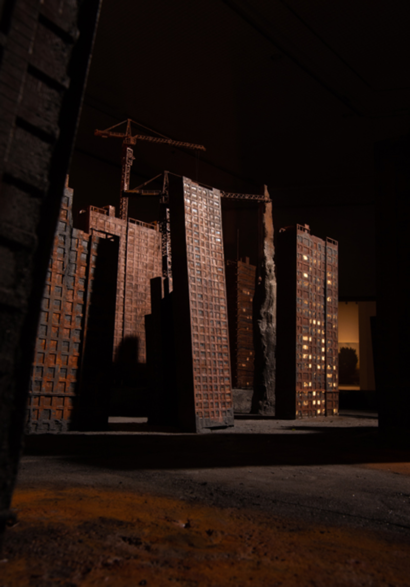 안효찬 작가는 인간의 탐욕과 사회의 모순을 풍자적인 시선으로 담아내는 설치작업을 보여주고 있다. 이번 전시에서는 인간에 의해 태어나고 도살되는 돼지와 환경을 파괴하여 세워지는 건물 공사 현장을 소재로 작업한 <우리안의 우리>에서 이어지는 <생산적 미완> 시리즈를 통해 자연에 대한 인간의 탐욕과 욕망, ‘게으른 폭력’에 대한 이야기를 던진다.