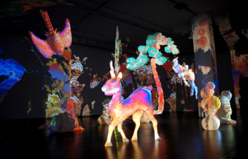배문경 작가는 미디어 작업을 통해 다양한 조형성과 공간성을 실험해오고 있는 작가이다. 이번 전시에서는 ‘이상한 나라의 민화이야기’를 주제로 우리에게 친숙한 민화를 차용한 평면 이미지를 3D 프린터라는 디지털 도구를 이용해 입체화한 조형물에 영상을 투사하는 작품을 선보이며 관람객의 공간 체험을 유도한다.