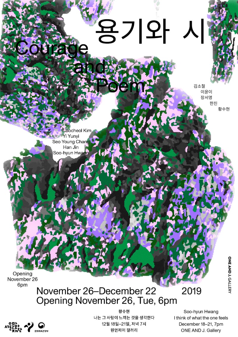 원앤제이 갤러리에서는 오는 년 월 일부터 월 일까지 그룹전 용기와 시 2019 11 26 12 22 < > 를 개최한다 김소철 이윤이 장서영 한진 작가가 참여하며 황수현 안무가의 퍼포먼스가 전시 마 지막 주에 4일간 진행될 예정이다. 전시 <용기와 시>는 프랑스 철학자 조르주 디디 위베르만Georges Didi-huberman이 자신의 책 『반딧불의 잔존 이미지의 정치학』 에서 인용한 이탈리아 철학자 아감벤 Giorgio Agamben의 문구로부터 시작된다. 위베르만은 이 책에서 아감벤의「동시대인이란 무엇인가 」라는 에세이의 문구를 인용하면서 동시대인의 임무로 '용기-정치의 덕 -와 시'를 손꼽는다. 그의 해석에 의하면 동시대인은 시대와 완전히 일치하지 않으며 시대를 바로 볼 수 있는, '도달할 수 없는 빛'을 지각하려는 용기를 가진 자이며, '언어를 부러뜨리고, 외관을 부수고, 시간의 통일성을 분산시키는 기예'로서의 시를 쓸 수 있는 자이다. 전시는 이러한 '동시대인의 임무'를 예술가의 임무로 변역하고 '도달할 수 없는 빛'을 아직 호명되지 않은 '고통 - 소수성 - 부조화'로 해석한다. 또한 작품을 통해 드러나게 되는 이 고통들이 전시라는 것을 통해 발행되어 사람들에게 인식되고 그로인해 아직 드러나지 않은 소수성들의 정치적 단위로의 진입을 상상한다. 김소철은 아르코미술관 담벼락을 허물거나 담배를 직접 키우고 만드는 워크숍을 진행하는 등 관객참여와 같은 미술 형식으로 사회문화를 비판하고 개입하며 시민사회 영역과 즐거움의 운동(conviviality)을 주로 다뤄왔다. 현재는 독립출판물을 비롯한 사회적 활동을 통해 라이프스타일을 제안하는 매체들을 수집하며 그것들이 이용자들에게 텍스트로서 전달될 수 있는 방법을 연구 중이다. 작가는 이번 전시에서 가벽을 활용해 공간을 구획하고 전시 관람의 경험에 개입한다. 영국의 스토우 가든과 건축가 라베스킨트에게 영감을 받은 이 가벽들은 자연의 환경에서 길을 헤매며 우연히 작품들을 발견할 수 있도록 관객을 유도한다. 또한 다양하게 꼬인 복도, 예리하게 꺽이는 벽과 갑작스레 맞닥뜨리는 공간들은 작업에서 나타나는 행위가 관객에게 변화를 요청하는, 위협적인 것으로 연출되었다. 이윤이는 자신과 주변 사람들의 비서사적인 행동과 말을 수집하며 영상과 사진,설치 작업 들을 선보여왔다. 사적인 사건들로부터 발생하는 감정과 언어, 행동들이 작품 안에서 시화 (詩化)될 때 그것들은 일상적이고 진부한 언어에서 정치적 언어, 진실에 가까이 다가갈 수 있는 통로로서의 언어로 변모한다. 전시에서 소개되는 영상 <습지, 영주권, 트리오>은 함께 유학생활을 하던 남자친구가 영주권 문제로 갑자기 한국으로 떠나야하는 상황을 묘사한다. 남자친구와의 갑작스러운 이별은 가벼운 사건일 수 있지만 영상 속 화자에게는 삶의 모든 형태들이 뒤바뀌고 분절되어 버리는 재난이 되어버린다. 또한 작가는 영주권을 받기 위해 오랫동안 미국에 거주하고 있는 실제 거주자의 목소리를 빌려 국가제도가 실제의 삶과 부조화 될 때 불안함으로 무너질 수 밖에 없는 개인의 모습을 그려낸다. 스스로의 질병 연대기를 작품으로 표현하는 장서영은 병명을 알 수 없고 표면적으로 드러나지 않기 때문에 설명할 수도 없는 고통과 이질감 등을 통해 존재의 어것남과 어두움을 드러낸다. 병이 낫지 않고 불안과 고통이 끝없이 이어지는 작가의 상태, 보여지지 않음으로 인해 타인의 도움을 받을 수도 없이 해결되지 않은 채 삶을 살아가야하는 상태들은 드러나지 않는 존재들, 스스로의 안식과 세상의 인식의 차이와 갈등 속에서 늘 두려움과 이질감을 느끼며 살아야하는 주변인들에 대한 비유로서 등장하기도 한다. 개인 질병의 연대기는 이로서 보이지 않는 고통들을 대변하고 그 삶들에 대한 사유를 제안한다. 한진은 중첩되거나 어지럽혀진 시간들 안에서 명료하게 몸(기억)에 남은 풍경들은 회화 또는 드로잉으로 재현한다. 그것들은 작가의 기억이라고 밖에 표현할 수 없지만, 우리가 살고 있는 시간의 어느 선상에서 어딘가에 존재하는 것들이며 그렇기 때문에 작가는 자신의 그림이 '재현'이며 분명한 대상이 존재한다고 말한다. 작가는 그것을 명확하게 표현해내기 위해 대상을 극한까지 따르며 탐구하고 표현하는데, 이는 몸에 새겨진 풍경을 다시 몸을 통해 재현하려는, 재현이 이루어지는 어떤 지점으로 작가가 몸소 다가가려는 것이기도 하다. 작가만이 알 수 있는, 모든 것이 명확하게 드러나는 순간이 되어서야 작가는 붓을 놓는데 그림으로써 보는 이들은 작가가 재현한 풍경을 공유받게 되고 비로소 현재의 시간 안에서도 그것들을 볼 수 있게 된다. 황수현은 오랫동안 감정이 배제된 움직임, 코레오그라피로서의 움직임에 대해 탐구해왔다. 작가는 <우는 감각>,<아임 크라잉, 벗 아임낫새드>,<나는 당신이 느끼는 것을 생각한다.>,<검정감각>등의 작업을 통해 울음과 웃음이라는 강렬한 신체표현들이 아무 감정을 담지 않고도 표출되어 전달될 수 있는지에 대해 보여주었는데, 이러한 움직임들이 표출되는 순간, 감정은 어떤 방식으로든 무용수 사이, 무용수와 관객 사이에 발생