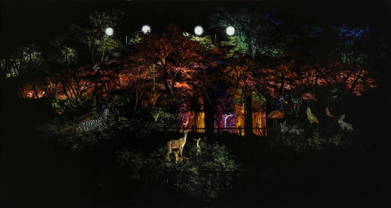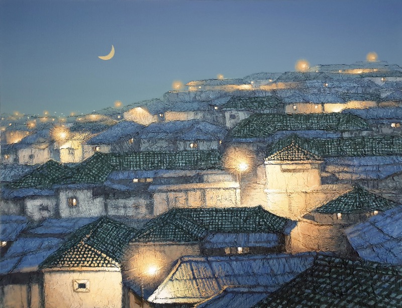 밤하늘의 빛을 바라보며 한 해를 마루리하는 연말기획전 광주신세계갤러리에서는 고요한 밤하늘의 달빛을 바라보며 한 해를 마무리할 수 있는 연말기획전 <빛이 머무는 밤>을 개최합니다. 밤하늘의 달과 잊혀진 마을풍경, 어둠 속의 화려한 빛의 환영과 풍경, 밤하늘을 떠다니는 열기구가 저마다의 개성 있는 빛을 발산하고 있습니다. 김춘재, 변지현, 이찬주, 정영주, 최수환, 다섯 명의 작가가 각기 다른 표현방식과 작품의 소재로 어둠 속에서 발하는 빛의 이야기를 들려줍니다. 어린 시절 할머니의 집에서 바라보았던 달을 잊을 수 없다는 변지현은 그 순간을 스스로 기억하기 위해, 그리고 그 순간의 느낌을 함께 공유하기 위해 슈퍼문을 그립니다. 넓은 논밭 위에 휘영청 떠 있던 커다란 보름달은 꼭 손으로 만질 수 있을 것만 같았고, 소녀는 그 달을 바라보며 꿈을 키워왔습니다. 전시장 벽면에 그려진 커다란 달은 부모님의 마음과 같은 따스함과 평온함이 담긴 추억을 전해줍니다. 정영주는 한지를 캔버스에 붙이는 파피에 콜레(Papier collé) 기법으로 형태를 만들고 그 위에 채색을 하여 달동네를 표현합니다. 종이 조각 하나하나가 모여 집이 되고, 기억의 조각조각이 모여 추억을 머금고 있는 마을을 만듭니다. 커다란 빌딩 숲에 가려져 너무 쉽게 잊혀지고, 새로운 것으로 대처되어 소외된 것들을 끄집어내어 우리에게 진정 소중한 것이 무엇인지 되돌아보게 합니다. 검정색 아크릴판(Plexi-glass)이나 래미네이트(Laminate)에 수많은 구멍을 뚫어, 그 구멍을 통해 나오는 빛으로 환영을 만들어내는 최수환은 작품을 바라보는 관객들에게 반문합니다. 과연 지금 보고 있는 것이 무엇인가? 구멍 뚫린 액자를 보고 있는 것인지 아니면 빛이 만들어내는 환영인지.. 사물의 표피만을 보고 본질을 보지 못하게 하는 눈부신 이미지를 통해 작가는 눈에 보이는 것만이 전부가 아님을 역설적으로 이야기합니다. 한치 앞을 가늠할 수 없는 어둠 속의 화려한 불빛이 발하는 판타지의 풍경이 김춘재의 회화에 담겨 있습니다. 칠흑 같은 어둠은 예측할 수 없는 미래의 모습이기도 하지만 그 안에서 화려하게 빛나는 환영은 우리의 아름다운 현실과 앞으로 나아가야 할 방향, 곧 희망을 나타내는 동시에 불안과 결핍을 내재하고 있습니다. 이찬주는 자신만의 집(열기구)을 밤하늘에 띄웁니다. 어둠 속에서 뚜렷한 방향을 잡지 못한 채 표류하는 듯 보이지만 별과 달을 따라 희망을 찾아 항해하고 있는 것입니다. 그의 열기구는 비록 서툴고 투박해 보이지만 자신만의 빛과 색을 비추며 새로운 길을 개척해 나갑니다. 어두운 밤의 한 줄기 빛이 저마다의 방식으로 빛을 내고 있습니다. 밤하늘의 달빛은 오래된 추억을 상기시켜주기도 하고, 잊혀진 마을은 소중한 것이 무엇인지 다시 한번 생각하게 해줍니다. 칠흑 같은 어둠 속 빛의 향연은 삶의 본질과 희망에 대한 메시지를 전달해 주기도 하고, 밤하늘의 열기구는 자신만의 빛을 내는 것이 얼마나 중요한지 말해줍니다. 어둠 속의 빛을 바라보며 차분한 마음으로 한 해를 마무리하면서 나만의 빛을 찾을 수 있는 새로운 한 해를 맞이하는 자리가 되었으면 합니다.