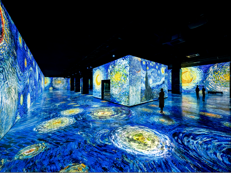 빈센트 반 고흐(1853-1890)는 그만의 독특한 삶과 작품 때문에 당대 가장 중요한 화가 중 한 사람으로 기억된다. 빛의 벙커의 이번 전시를 기획하면서 반 고흐의 독창적인 회화적 접근법을 그대로 표현하는 데에 심혈을 기울였다. 우리는 유화의 두께감과 색상이 주는 강렬함을 관람객에게 있는 그대로 전달하는 것이 무엇보다 중요하다고 생각했다. 그리고 반 고흐 작품만이 가진 독창적 특성이라 할 수 있는 붓 터치의 결단력과 유연한 라인에 초점을 맞추었다. 아트디렉터 지안프랑코 이안누치 이 전시는 반 고흐의 감자 먹는 사람들(The Potato Eaters, 1885), 별이 빛나는 밤(Starry Night, 1889), 해바라기(Sunflowers, 1888)에서부터 아를의 반 고흐의 방(The Bedroom at Arles, 1889)에 이르기까지 격변을 거친 반 고흐의 다양한 작품들을 선보인다. 대담한 색의 사용으로 그림에 독창성을 더한 반 고흐의 표현력과 강렬한 붓 터치를 벙커 벽면과 바닥을 통해 생생하게 느낄 수 있다. 빛의 벙커의 이번 몰입형 전시에서는 반 고흐의 감성적이고 혼란에 가득 찬 시적인 내면세계에 대한 이해를 높이고, 빛과 그림자의 끊임없는 소용돌이를 감상할 수 있다. 주제별 여정은 반 고흐의 삶의 각 단계와 뉘넨(Neunen), 아를(Arles), 파리(Paris), 생레미 드 프로방스 (Saint Rémy de Provence), 그리고 오베르 쉬르 우아즈(Auvers-sur-Oise)에서의 그의 흔적을 따라 이루어진다. 관람객들은 반 고흐의 초기 작품에서부터 전성기에 완성된 작품까지, 그리고 풍경화와 야경에서부터 자화상과 정물에 이르기까지 다양한 반 고흐 작품의 정수를 접할 수 있다.