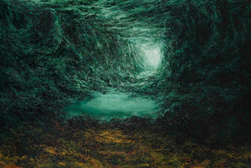어둠이 빚은 풍경 나의 작업은 그동안 ‘모호한 장소’ 라는 주제를 표현하는 그림을 그려왔다. 현실적으로 보이는 듯 하면서도 자세히 들여다보면 비현실적이기도 한, 뚜렷하지 않은 공간을 표현하였기에 작품은 주로 커다란 빛의 축으로 표현된다. 빛의 방향으로 지정된 어느 지점은 동굴처럼 다시 어두워지는 부분이 생기면서 풍경적인 외향은 점차 내면적인 표현으로 변화한다. 동굴을 닮은 풍경은 빛과 어둠으로 나눠진다. 빛은 어둠을 드러내기 위함이고 어둠은 빛을 위해 존재한다. 우리는 빛과 어둠 솎에서 언제나 방황하고 좌절하지만 그러기에 삶은 이어진다. - 박미경 소통의 중추로서의 불확실성-추상과 구상 사이 박미경의 회화는 그 결과만큼 과정을 추적하는 것이 중요하다. 우리가 그녀의 그림을 만나는 첫 순간 어둡고 묵직한 중량감을 지닌 초현실적인 풍경에 압도될 수 있다. 하지만 조금씩 그림 가까이 다가가자 공격적으로 보일 만큼 강한 검은 풍경은 짧은 선의 묶음이자 강박적인 움직임이었다. 수를 헤아릴 수 없는 짧은 붓질에 의해 완성된 그녀의 회화를 추상이라 불러야 할지, 아니면 이 모든 과정을 뒤로 하고 결과론적으로 풍경화라 불러야 할까? 이에 관해 작가는 특정적인 규정을 하지는 않는다. 본질적으로 작가가 추구하는 것은 붓질에 의해 나타나는 형태가 유기적으로 다른 형태와 만나는 과정을 추적하는 데에 방점을 두는 것은 분명하다. 하지만 이와 더불어 자연의 재현과는 다르지만 ‘풍경’이라는 개념으로서의 이미지를 떠올린다고 한다. 마치 판타지 영화에 등장할 것만 같은 초자연적인 풍경과의 유사성은 작가의 의도와는 무관하게 보는 이가 가진 인식의 틀에 의해 해석될 수밖에 없다. 역사가 없는 몽상적 회화-반복과 수행 그녀의 회화는 마치 주술적인 의례를 치르는 것처럼 간헐적인 선과 반복적인 행위로 이루어진다. 초반에 언급했듯, 사고 이후 신체 마비 상태에서 머리로 그릴 수밖에 없었던 세계는 시간을 초월한 비현실적인 장소, 자연을 닮았으나 자연과는 무관한 어떤 형상, 하나의 선이 다른 선을 만나면서 자연발생적으로 나타나는 자연을 닮은 이미지였다. 추상과 구상 사이 어딘가를 부유하는 그녀의 작업은 아마도 작가 자신이 생존하는 하나의 방식으로서의 ‘그림 그리기’를 수행하는 듯하다. 판타지 영화의 한 장면처럼 사실처럼 등장하는 비현실적인 풍경에 가까이 다가가자 모든 것이 환영이었다는 듯이 결국 몇 개의 선들, 붓질의 겹침이 만들어낸 추상이었음을 깨닫는 순간이야말로 박미경의 회화에 가까이 다가가는 방법일 것이다. 정현