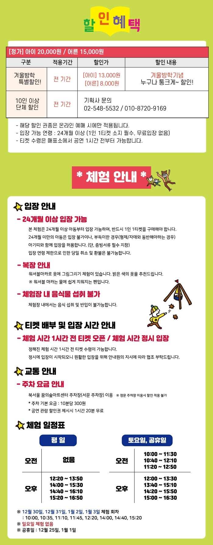 | 관람료| | 어른 15,000원 어린이 20,000원 |