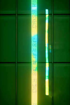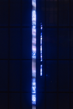 홀저는 1970년대 후반부터 뉴욕 거리에 익명의 포스터를 붙이기 시작했다. 이 시리즈는 <경구들(Truisms)>로 다양한 주제를 바탕으로 모순되는 관점과 논쟁을 불러 일으키는 간단하면서도 솔직한 문장들이 알파벳 순으로 배열된 작업이다. 작가는 지난 40여 년간 역사 및 정치적 부당성과 사회적 문제를 다루며 경각심을 불러일으키는 텍스트를 티셔츠와 모자, 명패, 돌 조각, 전광판, 건축물, 자연 등 다양한 매체에 적용하여 대중에게 메시지를 전달하였다. 모든 작품에서 홀저의 텍스트는 열린 해석과 논쟁으로 대중의 참여를 유도하고 대화를 촉발시킨다. 또한 그의 작업은 권력의 남용, 전쟁, 성 불평등과 같은 현대 사회의 문제를 공론화하고, 소외되고 배제된 이들의 목소리를 드러내며 공공 담론의 확장에 기여하고 있다.
