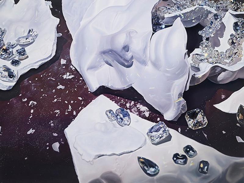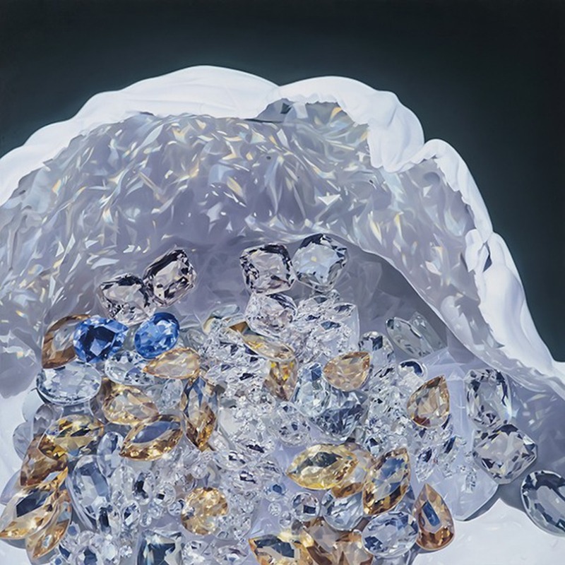 심윤옥| 예술은 진리를 추구하는 과정이며, 아름다움은 진리가 생성 존재하는 한 방식이다. 나는 보석이 갖는 아름다움과 변하지 않는 가치를 통하여 인간이 추구하는 본질적 가치와 영속성을 표현한다. 작품에서 보석은 다각적인 반사면으로부터 형언 불가의 찬란한 반짝임으로 빛의 스펙트럼을 형성한다. 빛과 색의 유출은 어둠을 통하여 팽창하며 전체를 구성하고 조화됨으로써 신비하고 경건한 아우라(Aura)의 포착점에 이르게 된다. 또한 군집을 이룬 보석들의 분출되는 에너지는 웅장미와 경탄을 자아낸다. 보석이란, 인간이 염원하는 아름다움과 고귀함의 가치를 영구 지속시키기 위하여 광물로부터 가공한 것이기에 인위적인 영원성이라는 특별한 의미를 도출시킨다. 보석은 곧 예술의 영원성을 은유한다. 인간의 근원과 본질을 찾고자 끊임없는 창작에 의해 이루어지는 예술은 세상과의 역동적 관계 속에 의미와 가치가 재탄생되는 영원성을 갖는다. 이는 '영원회귀(永遠回歸)' 즉, 시간성 속에서 생성과 소멸이 반복하며 고유함을 창조하는 힘이다. 일시성을 드러내는 소재와 보석을 대비시켜 시간 속에서 생성 반복되고 다시 포착되는 영원성을 고찰하고자 한다. 또한 기술복제가 만연해진 현시대에 발터 벤야민(Walter Benjamin)의 아우라(Aura) 개념에서 나타나는 예술작품이 지니는 숭고함, 고귀함을 나만의 방식으로 작품에 담고자 치열하게 시도한다. 더불어 예술의 영원성의 의미를 성찰하며 작가로서 내가 행하는 순수한 행위를 통해 예술의 본질을 찾으려 한다. 보석과 빛, 어둠과 색의 스펙트럼이 조화를 이루어 나타낸 아우라(Aura)의 현대적 재해석에 공감하는 시각적 경험이 되기를 희망한다.