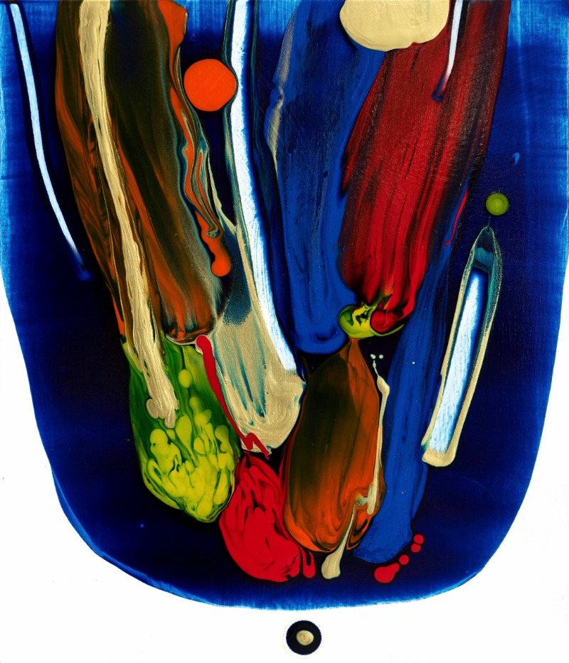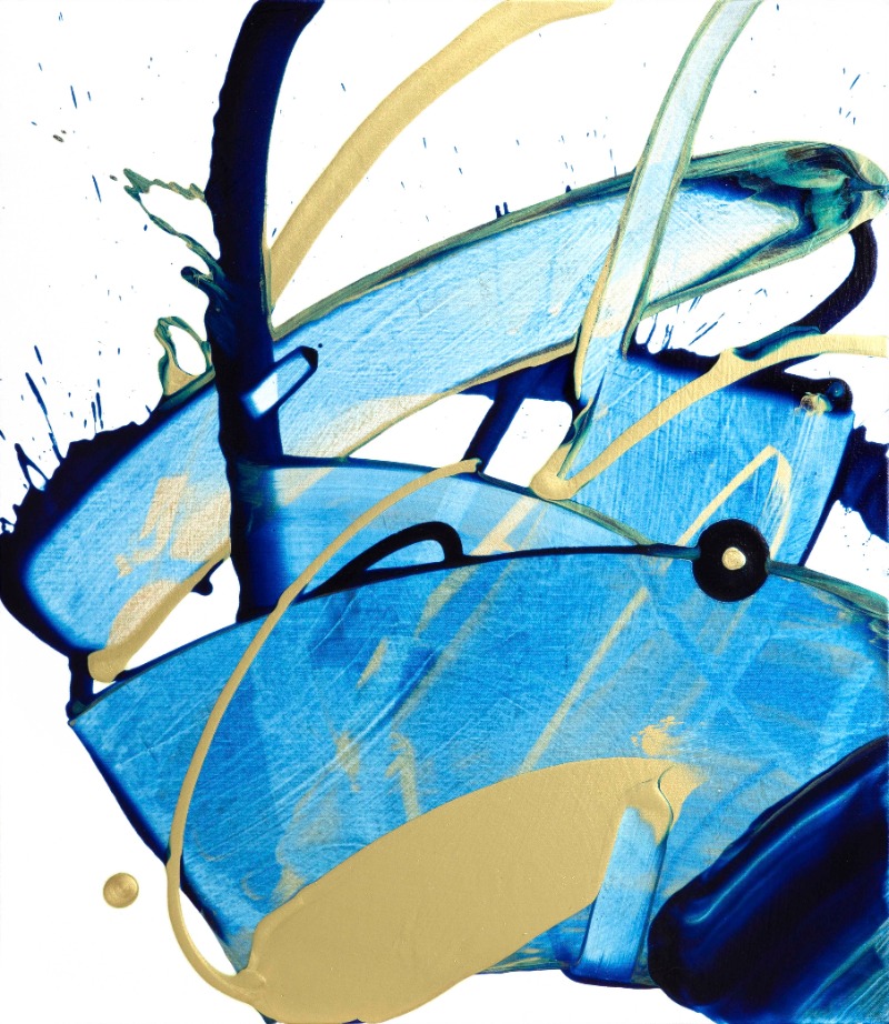 과감한 붓질은 파란 획을 그으며 마치 살아 움직이는 듯, 서로 만나고 겹치면서 긴장감 있고 역동적인 화면을 만들어낸다. 작가는 캔버스를 바닥에 펼쳐놓고 붓이나 주걱 등 직접 만든 도구로 일필휘지 그려나간다. 그의 회화는 주로 질료의 농담 차이를 두고 투명하고 유동적인 붓놀림을 보여주는데, 붓이 스쳐 지나가는 시간과 방향, 우연적 요소는 변화를 이끌어내며 의미가 발생한다. 화면 속 우연에 의한 사건들은 작가 자신의 시작과 우주의 탄생과 마찬가지로 알 수 없는 이야기들, 전통적 의미화를 넘어 패러독스로 확장된다. 그는 감각에 의존하여 회화적 움직임과 정지의 순간을 오가면서 공존과 균형의 느낌을 놓치지 않는다. 작품은 전체적으로는 절제되고 균형 잡힌 구도를 보이는 한편 그 안에서 서로 맞물리고 영향을 주고받는 가운데 끊임없이 생성과 소멸을 거듭하는 디오니소스적 생명력이 분출되고 있다.