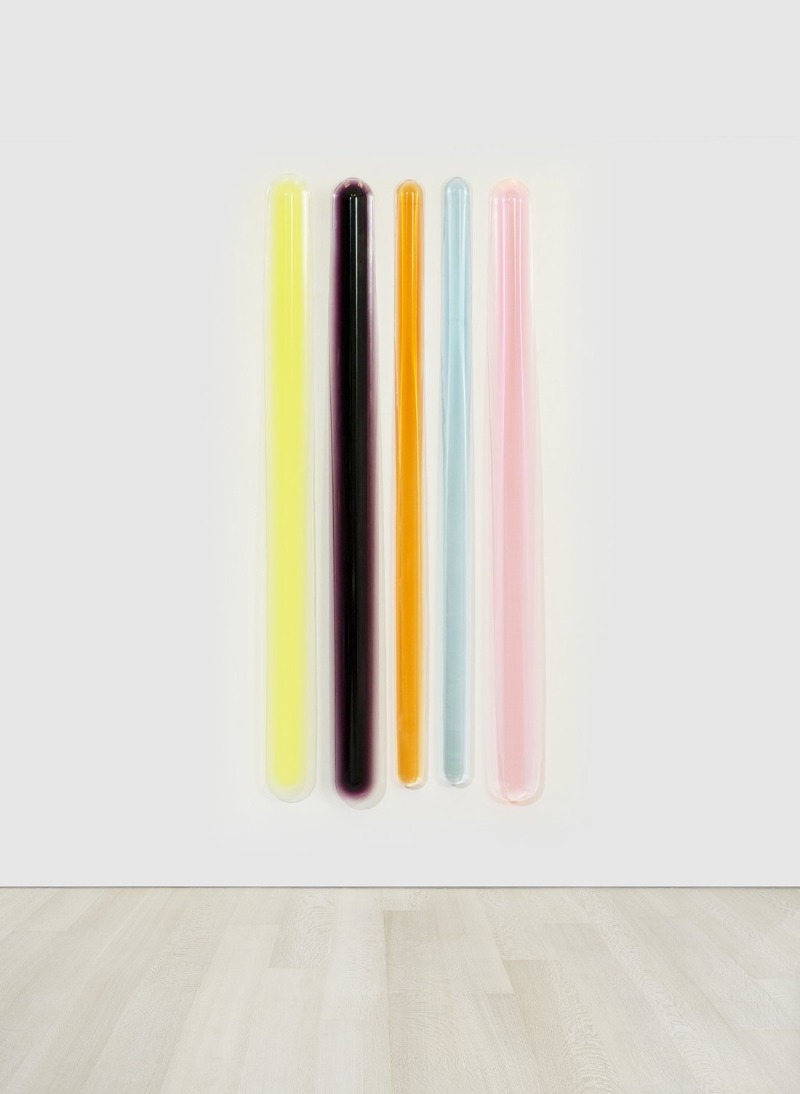 Bringing together a focused selection of works that employ light as their primary medium, Bending Light charts the evolving affinities between California artists Peter Alexander, Robert Irwin, and James Turrell and their Minimalist contemporary on the East Coast, Dan Flavin. The exhibition presents recent works by these three key figures of the Light and Space movement—centered in Southern California beginning from the 1960s onward—in spatial and perceptual dialogue with an installation by Flavin, a New York-based artist long recognized as central to the canon of Minimalism. The exhibition will be on view at Pace Gallery in Seoul, Korea, from June 5 to August 14. Paying homage to the unwritten artistic exchange between California and New York in the 1960s and after, the exhibition presents cast urethane sculptures by Peter Alexander from 2019 alongside an “unlit” fluorescent sculpture by Robert Irwin from the same year. Together, these works are juxtaposed with a 2018 installation by James Turrell embedded in the gallery wall nearby. The works by these three seminal Light and Space artists exist in dialogue with Dan Flavin’s 1984 light installation, installed in the far corner of the gallery with a single fluorescent tube projecting out into space. Each work illuminates and reflects the others around it—both literally and metaphorically—making visible the shared aesthetic concerns that circulated and cross-pollinated among artists on both coasts in the decades following the 1960s. “New York certainly was the precedent that I was familiar with in the mid-Sixties,” recounts Peter Alexander in a 1995 interview, “if for no other reason [than] that all the words come out of New York, for whatever they're worth.” Alexander’s skepticism toward words—his challenge of the authority of art criticism—is echoed in the work of Irwin and Turrell, but it also reflects an attitude consistent with Minimalists like Flavin, who were similarly concerned with the limits of language. Irwin remains famous for his dictum that “seeing is forgetting the name of the thing one sees,” while Turrell has often compared the experience of his light-based works to an experience “outside” or “beyond” language. The perceptual experience generated by Flavin’s fluorescent installations is similarly description-defying. Peter Alexander’s cast urethane sculptures refract light rather than emit it, yet their effect is equally phenomenological, resisting verbal description through a singular and beguiling visual presence. Suggesting liquid color that has miraculously congealed into geometric solidity, his works arrest and cradle light within their nebulous interiors, re-emitting it in a mirage-like emanation that dissolves their otherwise hard edges. These prismatic objects are in many ways direct continuations of the artist’s breakthrough sculptures of the 1960s. Critics observed that those early resin works often seemed to capture the ephemeral quality of light particular to the Los Angeles skies—the saturated palette of smog-embellished sunsets, or else the pale, cooler tones of coastal mists and clouds reflected in water. The visual and phenomenal effects of water and light were always important to Alexander’s work, which he originally made using the same poured resin technique when fabricating surfboards—a somewhat defiant gesture on the artist’s part. “Art was not made out of plastic in those days,” he explains. “Art was made out of all the things that history has said art is made of. So one of the reasons why I liked plastic was that it was sort of anti-art, so to speak. . . I used to glaze surfboards [and] I remembered the resin in the bottom of the Dixie cup. That's how I got into the idea of casting the resin.” In the mid-1960s, resins and plastics represented an exciting space-age material closely associated with the aeronautical and defense industries in Southern California, where James Turrell was raised by a father who worked as an aeronautical engineer. Turrell’s early exposure to aeronautics and aviation while growing up in Pasadena led him to obtain a pilot’s license by the age of sixteen. Later, his artistic practice became deeply informed by an experience he would come to call “inhabiting the sky”—his term for the embodied sensory perception that one achieves when “soaring” through the atmosphere while piloting small aircraft. From 1967 onward, Turrell began creating artworks consisting entirely of light, projecting luminous shapes into and across space, eschewing even the modicum of material support offered by a bulb. Atlantis, Medium Rectangle Glass (2019) belongs to a series of works that represents the culmination of his lifelong interest in dematerializing the art object into an experience of pure luminosity, and in so doing capturing the chromatic wonder of the heavens. A luminous portal cut directly into the gallery wall, Turrell’s work brings about a shifting radiance suggestive of nothing so much as the changing celestial tapestry of the sky itself. For Turrell—a quaker—the use of light is also suggestive of the meditative, the revelatory, and the transcendental. Since the 1950s, Robert Irwin’s work has continually reshaped the boundaries of what art can be, often by exploring how light can alter, extend, or manifest the fundamental conditions of human perception—what the artist has called the “seemingly infinitely textured field of our presence in the world.” Belmont Shore (2018) belongs to a recent body of sculptural works involving vertical rows of “unlit” fluorescent lights installed directly on the wall. The unlit bulbs are covered in transparent colored gels, each fixture separated by alternating gaps of “empty” wall, some painted in subtle shades of gray. Shadowed and reflected intervals of color and blank space reverberate rhythmically in the viewer’s visual field, destabilizing any sense of fig