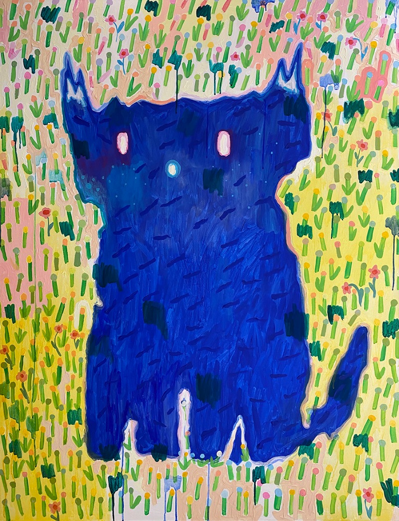 내 작업의 시작을 돌아보면 기록으로서의 기능을 존중하는 것에서 기인한다. 혼자 몰두해서 쓰는 편지이지만 어떤 사건이나 일상 속에서 잊히기 쉬운 환경의 폭력적인 면에 대립하는 행위로 마음을 적는 것에서 시작되었다고 볼 수 있다. 210 X 297mm (A4 복사용지) 크기의 흰 종이에 담긴 마음은 캔버스 100호 크기로 확대되었고 화면이 넓어져서 무엇을 그렸는지가 더 잘 보일 뿐 작거나 큰 종이와 캔버스의 본질은 다르지 않다고 생각된다. 무의식적인 위치선정으로 시작된 점으로부터 선과 면으로 확장된 이미지는 내가 담고자 했던 것을 뛰어넘어 다른 것을 드러내 보여주곤 한다. 좀 더 큰 목소리를 내고 싶어서 선택한 커다란 캔버스에 그려진 그림은 예상했던 것과는 다른 존재감도 보여주었다. 화면의 크기가 전달하는 에너지가 있기에 앞으로는 그 부분에 대한 연구도 필요할 것 같지만 어떤 작업을 위해 재료를 준비하는 계획적인 태도 보다는 평소 마음이 이끄는 데로 수집했던 재료들을 화면에 필요에 따라서 적용하는 방식의 작업과정이 매력적으로 느껴진다. 이번 개인전에서 펼쳐지는 대부분의 작업은 이사 후 새로운 공간에서 그려졌다. 마침 생애 처음으로 겪어보는 일처럼 낯선 바이러스로 인해 고립을 자처하던 시기에 나와 타인을 위한 기도의 마음 외에 무엇을 해야 할지 모를 혼돈 속에서 그동안 필요에 따라 편리하게 습관적으로 행하고 의식 없이 당연하게 누려왔던 것들을 다른 무게와 질감으로 바라보는 눈을 더 크게 뜨게 했다. 예를 들어 이번 전시에 걸린 [핑개]라는 작품을 보면 질감을 드러내는 방법으로 손가락에 물감을 묻혀 작업자의 태도로서 구체적인 간절함을 드러내는 행위로 건강을 기원하며 손가락 터치 하나에 ‘아프지 마세요’ 라고 말하며 물감을 묻힌 손가락으로 캔버스에 조심스럽게 핑거드로잉 하는 행위로 마음의 평화와 에너지가 그림 속에 가만히 깃들기를 바랬다. [매일 자라는 그림들]이라는 개인적인 기록물이 있는데 ( 매일 자라는 그림들 ; 스스로 기억력의 한계를 의식하고 찰나처럼 지나가는 순간을 종이에 그리고 써서 스크랩북에 오려 붙이고 단상을 무심히 배치한 기록물 ) 시간이 흐른다는 것을 보여주는 스크랩북의 짧은 기록들을 넘겨 보면 많은 사건과 이야기들을 지나 이곳에 이르렀고 그 사건과 이야기들은 지금의 현실과 긴밀하게 연관되었음을 실감하며 작업을 구상하거나 화면을 마주할 때 우연을 가장해서 갑자기 떠오르거나 튀어나오는 이미지가 흥미롭게 느껴지기도 하고 지나온 시간과의 연관이 있을지도 모를 이미지와 색을 화면에 드러내며 쫓는 것이 나에게 작업의 중요한 요소로 작용하는 것은 아닌가 추리해본다. 나의 작업도 오늘의 시간과 일상을 지내면서 빛과 물, 바람 등을 흡수한 식물이 자라듯 스스로 잎을 떨어뜨리고 성장을 조율하면서 자연스럽게 나다운 형태로 풍성해진다고 생각된다.