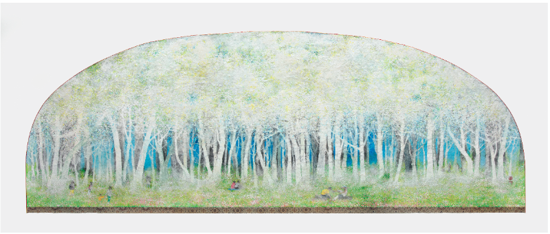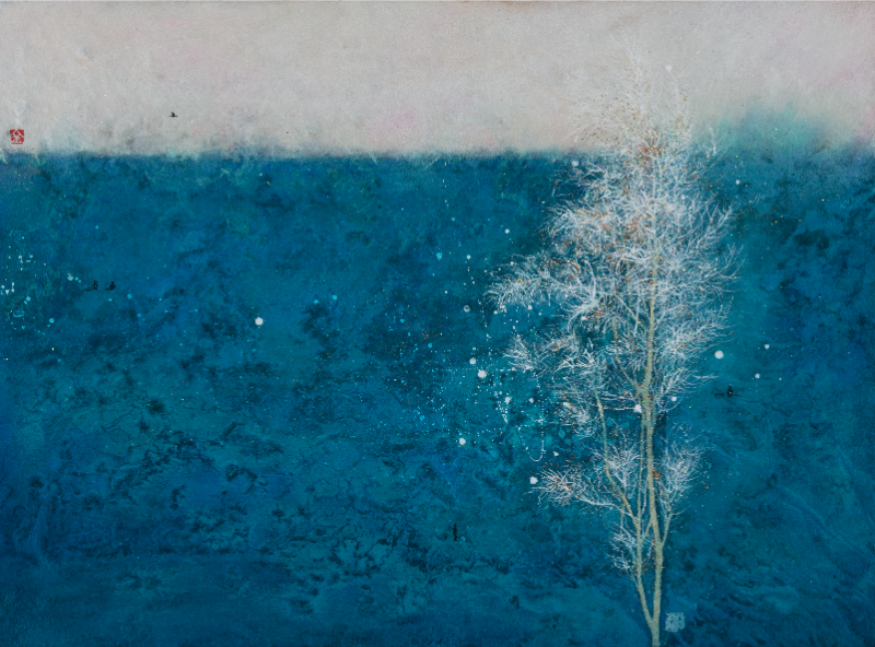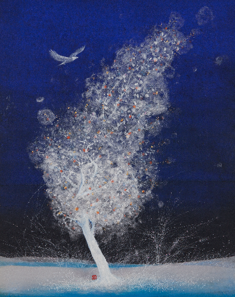 전시 글 생명의 시작과 명(命) 작가 김정수는 본인의 의식에 잠재되어있는 종교적 뿌리와 말씀을 작업을 통하여 이야기하고 있다. 그의 작품에 보여지는 나무와 새들은 흡사 천국의 나무와 같이 느껴지며 ”피안의 자연물“ 이아닐까 라는 의구심을 갖게 한다 사전에서 말하는 ”피안“의 의미는 사바세계 저쪽에 있는 깨달음의 세계. 이승의 번뇌를 해탈하여 열반의 세계에 이름. 또는 그런 경지. 현실적으로 존재하지 아니하는 관념적으로 생각해 낸 현실 밖의 세계를 일컫는다고 씌어있다. 여기서 묘한 아이러니가 겹치는 이유는 그의 작업에서 보여주는 생명의 피조물들은 기독교적 창조와 천국을 그리고 있으나 그 깊은 의미를 들여다보고 있으면 관념의 세계를 뛰어넘은 그 무엇의 해탈을 품고 있는 것과 같이 보인다. 김정수 작가는 붓의 사용을 최소화하고 오로지 한지만을 겹치고 뜯어내어 형태와 색을 만들어 작업을 하고 있다. 이 수고로운 반복적 과정은 수천 번의 겹치고 떼어져야만 그 형태를 드러내는 고달픈 일 것이다. 그래서 오직 그만이 할 수 있는 집요한 작가적 기세로 앞으로의 작업을 가늠해 보고 싶어진다. Gallery Knot 작가노트 한국의 전통 닥종이를 백묵(白墨)처럼 작업해 왔던 나는 2019년 <The Tree of Life- I see You>展을 통해 ‘시’적인 분위기를 그림으로 재해석해 보았다. “詩意氛圍”에 대한 회화적 표현을 나의 창작 작품과 그에 관련된 이론들을 바탕으로 연구한 논문으로 국립대만사범대학 한국인 최초 박사학위를 받은 나의 작품은 대부분 평온하고 서정적이다. 이는 근간의 ‘생명나무’ 시리즈 중 ‘I see You’ 작가가 바라보는 것들에 대한 실상이다. ‘한 송이 들꽃에서 천국을 본다’는 윌리암 브레이크의 시구에서 영감을 받은 나는 가녀린 꽃 한 잎에서 자연을 보며 손안에서 무한을, 순간에서 영원과 천국을 본다. ‘생명나무’ 를 모토로 하는 나의 작품은 하나의 가녀린 꽃잎이 큰 산과 나무가 된다. 작은 꽃 송이 안에 드넓은 하늘과 초원이 존재하고 자그마한 사람의 형상들은 자연의 일부로 그들과 하나가 된다. 나는 마치 호홉을 불어 넣듯이 닥종이를 이용해 작품에 생기를 불어 넣는다. 자연의 일부인 닥종이 안료는 작업을 통해 자연 그대로가 된다. 대만 유학시절부터 가장 한국적인 것에 대한 표현을 연구해 온 나는 전통 닥종이 안료를 통해 섬세한 감각으로 한 민족의 상징인 백색을 표현해 왔다. 그리고 특별히 한민족의 상징인 한라산과 백두산을 하나의 연작으로 표현하여, 한 민족의 평화와 하나됨. 통일을 염원해 보았다. 거대한 백두산을 한 송이의 꽃처럼 표현한 이 작품을 통해 전통을 현대적 감각으로 재해석한 그림들을 또 하나의 ‘詩語’로 他者는 만나게 될 것이다. 어느 좋은 날 김정수 [출처] 갤러리 너트 홈페이지