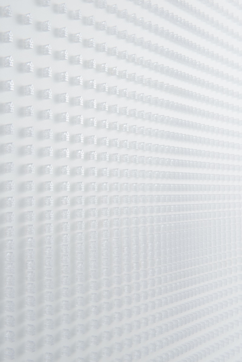 이렇듯 작가가 고안한 틀 속에서 찍혀 나온 낱개의 형상은 그 자체가 완결성을 지닌다. 스테인리스 금속으로 완성되어 좌대 위에 올린 환조 작업은 그것만으로 독립된 하나의 작품이며, 플라스틱으로 된 글자 알갱이들은 줄과 칸을 꼼꼼히 지키며 평면회화 작업과 부조 작업의 경계 어딘가에 자리매김한다. 크든 작든 어쨌든 이 모든 것은 정확한 배열 방식을 염두에 두고 이루어진다. <꽃> 연작이 그러했으며, 펀칭된 철판에 색색의 전구가 불을 밝힌 <볕>도 인상적인 착안이었다. 그리고 이번에 나온 <숲>을 포함한 이 전부는 같은 원리에서 태어난 형제자매다. 그러나 의미는 조금씩 다르다. 꽃은 아름다움의 표상인 하나의 개체다. 이에 비해 볕은 총량을 헤아리기 어려운 매개체에 가깝다. 여기, 숲은 나무와 풀과 꽃과 열매, 이것만으로도 모자라 여러 동물과 물과 공기와 바람과 지리적 특성을 모두 품은 일종의 집합체 개념이다. 이런 복잡한 덩어리(complexity)를 글자 하나의 틀에 꽁꽁 싸매어 단 번에 정리하는 건 예술가의 특권이다.