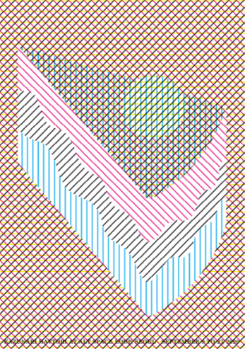카즈나리 핫토리의 작업을 보고 있으면 ‘비스듬하다’는 생각이 떠오른다. 미츠비시 1호관 미술관이나 문학잡지 <한밤중Mayonaka>의 로고 디자인, 다각 형의 그래픽을 구성하는 선, 큐피 하프의 광고 카피의 위치, 글꼴, 벡터 그리고 레이아웃, 디테일부터 전체까지 모든 곳에 ‘비스듬’이 침투해 있다.