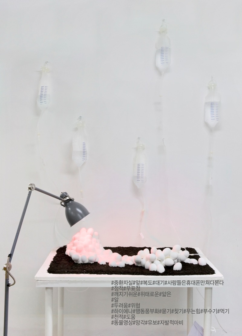 • 			전시는 인터넷을 매개로 접하는 미디어 이미지와 관련된다. 나는 끊임없이 디지털 기기