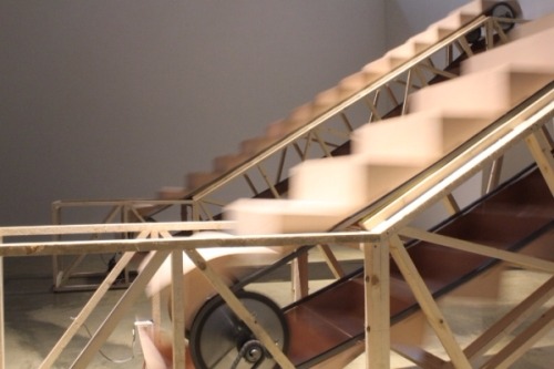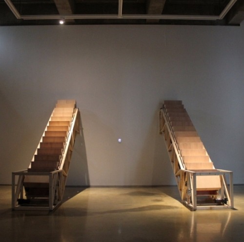 번잡함으로 가득한 도시 안에서 우리는 에스컬레이터에 설정된 적정 속도에 맞춰 마치 컨베이어 벨트에 실린 제품처럼 같은 모습으로 반복되는 삶을 살아간다. 우리는 그렇게 쉬지 않고 움직이는 일상의 컨베이어 벨트에 삶을 실은 채 멈추지 못하고 많은 것을 지나쳐왔을 것이다. 사람들의 발걸음이 사라지고 무의미하게 반복되는 기계의 움직임, 고요함 속에 마주한 에스컬레이터 기계의 민낯은 낯선 모습으로 내 발걸음을 멈춰 세웠다. 높은 곳에서 끝 없이 쏟아져 내리는 계단에서 상상 속 폭포의 이미지를 떠올린다. 오르고 내리는 기계의 일정한 속도에 맞춰 천천히 숨을 들이쉬고 내쉬어본다.