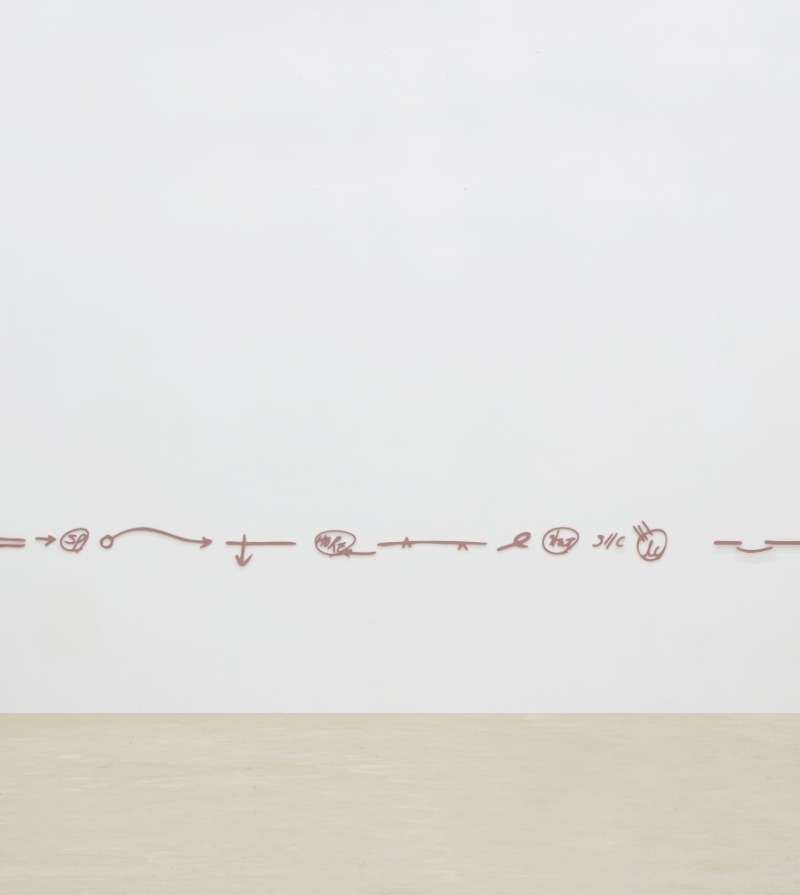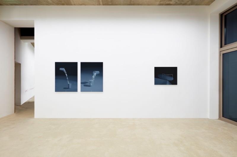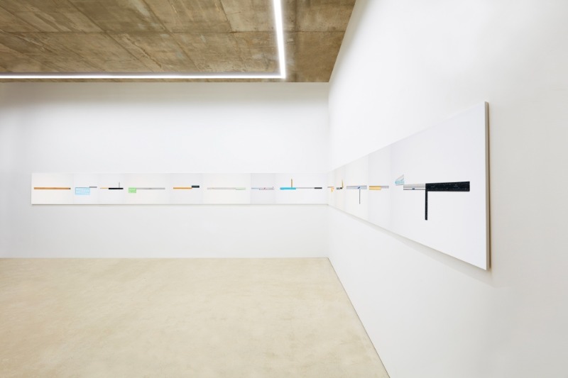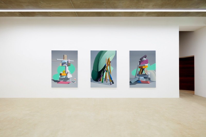 Why are there a pair of gloves dropped on a street, its owner unknown? The paradox and absurdity of this strange situation and its vestiges, the temporary situation, gap between language and reality, what I know perceived as real, and how it is not the truth. Jiyon Hong’s works are vessels of her emotion, humor, and doubts. They culminate into a question and answer of the self, reality, and the why of self-denial. Jiyon Hong’s solo exhibition Refresh is a presentation of both flat and three-dimensional works.'Eraser1', 'Eraser2', and 'Pencil' were first modeled in 3D, using Cinema 4D, before putting each scene on to the canvas. 3D modeling is a means to transcend reality, to create scenes otherwise impossible with a real-life object. The picture features mundane objects such as erasers and pencils. The artist explains that the intention was to embody in the eraser as an object, the concepts of thing which erases and that which makes anew. 3D modeling programs and photo-editing software makes it very easy to erase images and to return edited images to their original state especially when we click the Refresh button. The eraser is a metaphor for making something anew in a virtual space. The pencil is there, because Hong originally wanted a pencil with a rubber tip, and because the two make a complimentary pair. 'Mistake and Fall' is an installation work that comes from an image of a stack of pencils and erasers. The work consists of a downward arrow, symbols for proofreading and revision, and the empty blankness one can see when an image is erased in 3D modeling programs or photoshop. Jiyon Hong used 3D modeling to add arrows for creating movements of action of stacked pencils and erasers collapse. The construction of objects in virtual space is in painting, and the precursor to falling-and-making-anew is in installation form. The symbols for proofreading and revision are not images but a making-anew of language. 'Horizon' is about 10-meters wide horizontally, a ruler that measures length. It comes from the artist’s experience of drawing with a ruler for accuracy, but again needing a leveler to ensure a horizontal line. To measure with a ruler is to make anew by confirming or verify. That is, to remove any inkling of doubt and suspicion. The exhibition is summarized in the concept of make anew, via a process of construction, denial, fallout, verification and correction. Perfection is not her aim, and she explains that (perfect) change is not possible. She prefers to avoid discussions of overcoming the present situation or suggest solutions. Rather, she presents a repeating process. Her paintings, drawings, and installations tell different stories, more specifically, fragmented stages of construction, denial, fallout, validation and correction. It goes without saying that the works are important individually, but it is also worth noting the changing circumstances between each work. Jiyon Hong says she wanted to create a situation where symbols were intertwined. This refers to both the form of symbols and the entanglement of meaning. The artwork is ambiguous about what it may convey, and the unmistakable arrow feels like it symbolizes something, but Hong hopes that it points to nothing particular at all. She wants to avoid any immediate assignment of meaning, because “that would be too easy.” The moment we try to assign meaning to a person, place or thing, we might be alienating ourselves, by assuming that we have comprehended and packed everything about the subject into that meaning. Vigilance against such haste and oversimplification of the subject, the language, the symbol, the image, and some narratives may thrive in the native layers that they are meant to be in.