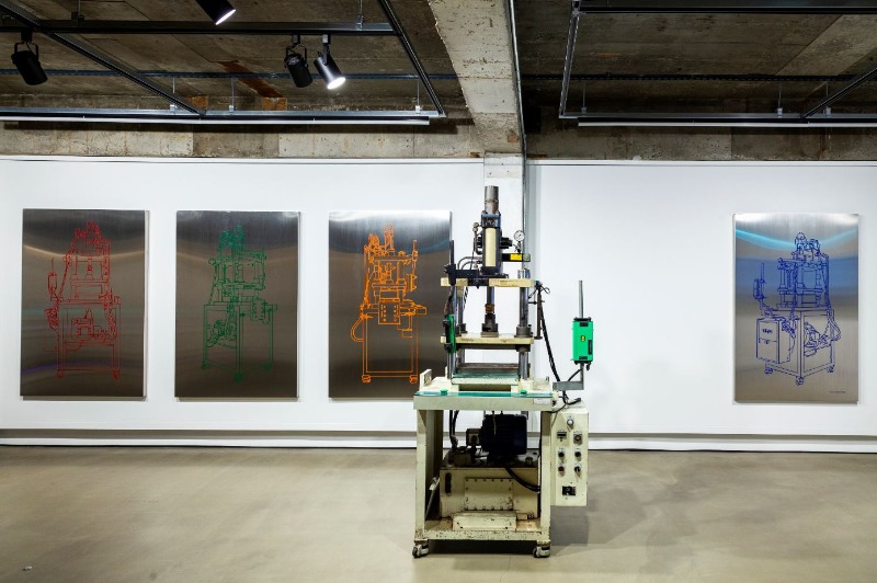 김상현 작가의 해석은 직관적이면서 상징적이다. 작가는 기계 생산적인 결과물을 통해 영일프레시젼의 역사와 공단의 분위기를 연출하고자 했다. 실제 프레스기를 통해 제작된 방열판은 기계 공정 생산물이라는 상징을 나타내고, 스테인리스 스틸 재료를 사용해 만든 레드/블루/그린/오렌지 작품은 판금 제작이 잦은 금천 공단의 문화를 나타낸다. 또한 공장에 맡겨 음각으로 제작된 드로잉, 시간의 흔적을 보여주고자 의도적으로 삭제된 사진과 프로젝션등도 모두 작가의 기획 하에 제작되었다. 하지만 가장 인상적인 것은 오랜 기간 회사의 역사를 몸으로 버텨온 유압 프레스기가 전시되고 있다는 점이다. 이 작품은 공장의 기계와 노동의 역사를 대변할 수 있는 작품을 고민했던 작가의 의도가 반영되었다.