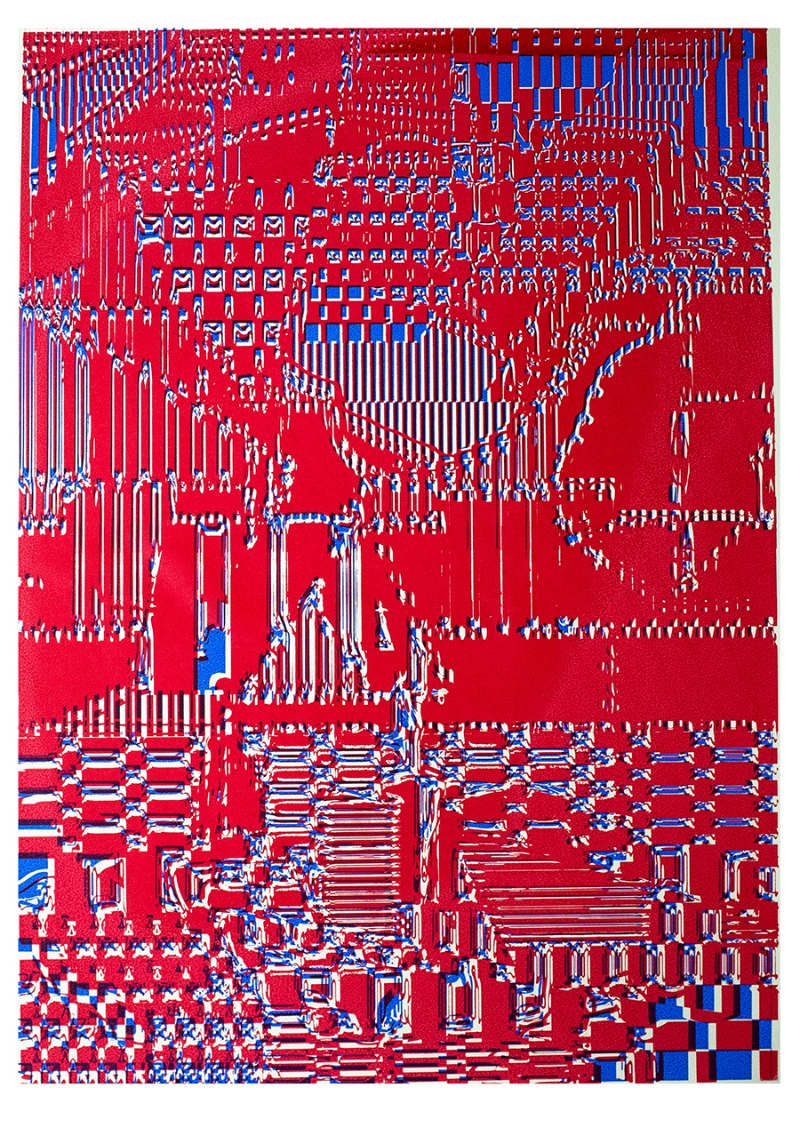 상업제품 이미지 위로 관통하며 우연을 가장한 듯 관여하는 또다른 상업제품 이미지, 긍정의 결합 혹은 화합의 이미지가 아닌 협상되지 않은 이미지의 거친 개입. 그의 사진 작품들에 나타난 이미지의 됨됨이다. 대량으로 쏟아져 생산되지만 시간이 지나면 언급조차 되지않거나 사용되지 않게 되어 잊혀질 상업제품의 운명과 대조적으로 눈에 띄기 위해 화려하게 포장되는 이미지들은 제임스에 의해 화폭 안에서 수동적으로 조합되어 죽은 자연이자 정물화로서 등장해왔다. 예술가의 화폭 내 그리기 위해 예술가의 의도대로 놓인 상징적인 무생물의 물건을 ‘정물’이라고 부르고, 프랑스어로 정물화를 ‘죽은 자연(Nature Morte)’라고 일컫는데 제임스는 그 자신의 모습 조차 화폭에서 호출되어 색의 스펙트럼 속에서 무생물화 즉 정물화 과정을 겪었다. 그렇게 제임스로부터 연출된 정물화 속 이미지들은 시각적 노출 메커니즘으로서 전시의 회를 거듭할 수록 최종 빨강과 파란색으로 전면 위장하고 조형적 요소들은 점차 추상화 과정을 겪는다.