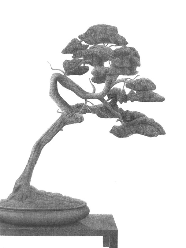 앞에서 그는 이번 전시를 통해 왜 그리는지 말하고 싶었던 것 같다고 기술한 바 있다. 그것을 살피기 위해서 아이러니컬하게도 그가 그린 대상들을 다시 주목하게 된다. 먼저 에 그려진 버드나무, 의 분재, 의 크리스마스 트리를 보자. 세 작품 모두 ‘나무’를 다루고 있지만, 각기 다른 의미를 지닌다. 는 화분에 심어 보기 좋게 가꾼 분재로 진짜 나무의 모양과 흡사하지만, 명백히 인위적으로 만들어졌고, 는 작품명은 나무지만, 형태는 크리스마스를 기념하기 위해 모양을 가꾼 형태이며, 는 가장 실제 풍경과 가깝지만, 우리가 주변에서 흔히 볼 수는 없다는 점에서, 그리고 작가 역시도 인터넷에서 찾은 이미지를 레퍼런스로 삼았다는 점에서 현실과 거리감을 찾을 수 있다. 에서는 물에 반사된 나무와 하늘의 풍경이 대칭적으로 그려져 초현실적 감각을 일깨우고 있고, 수조 안의 모습을 그린 에서는 실제 호수에서는 볼 수 없는 수초와 물고기를 가까이서 관찰할 수 있다. 마지막으로 화장품 통을 세워놓고 그린 와 마천루로 가득한 홍콩의 도시 풍경을 그린 <22.2816 114.1512>에서는 전혀 관련이 없는 대상임에도 형태적 유사성에서 일종의 동질감이 느껴지기도 한다.
